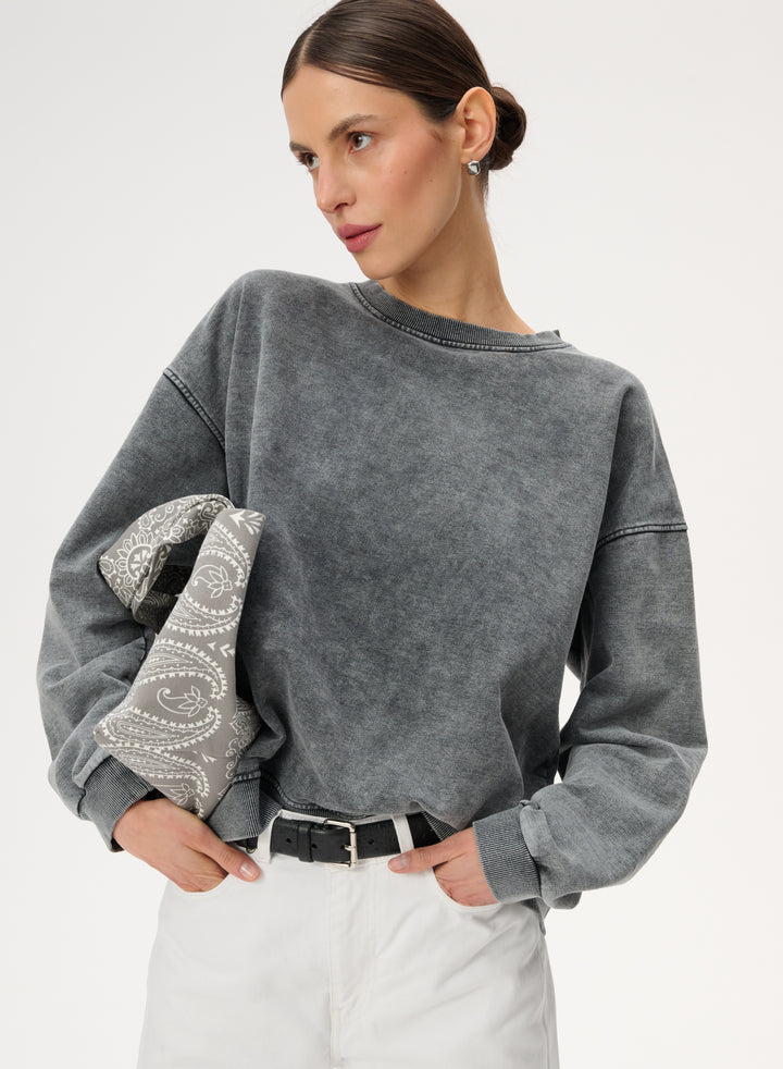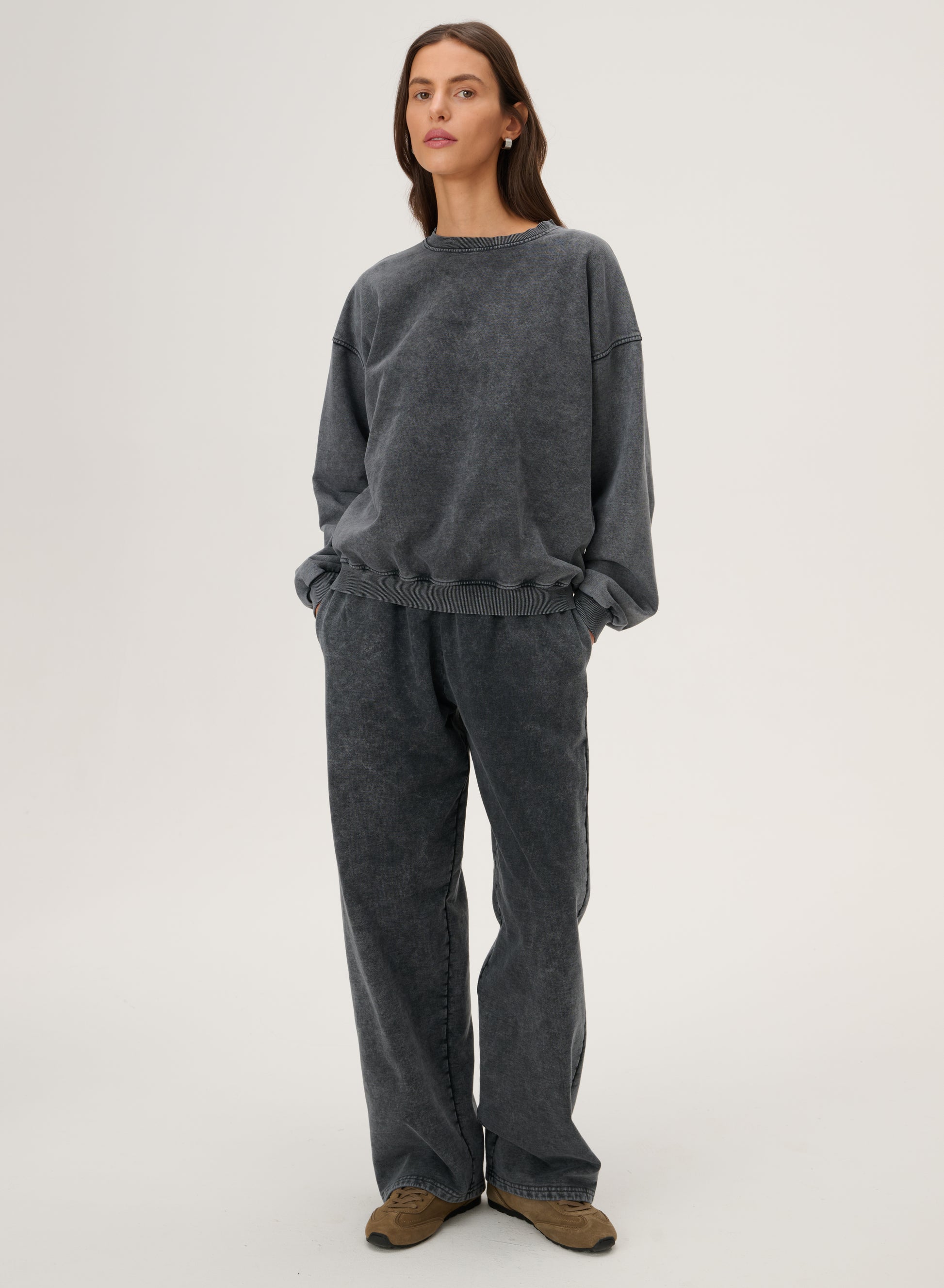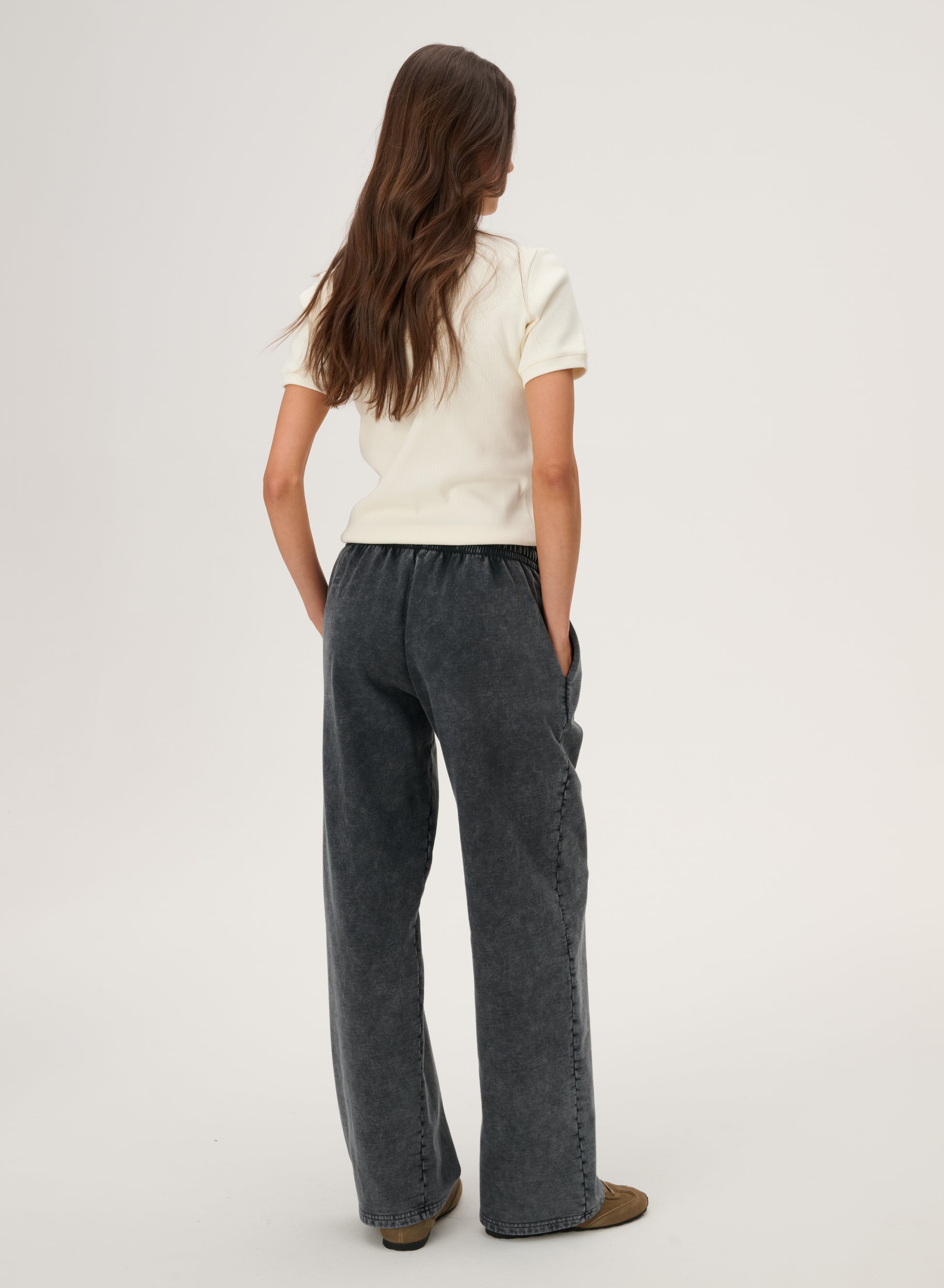 Spodnie z bawełnianej dzianiny z szeroką nogawką w szarym kolorze - Bruno