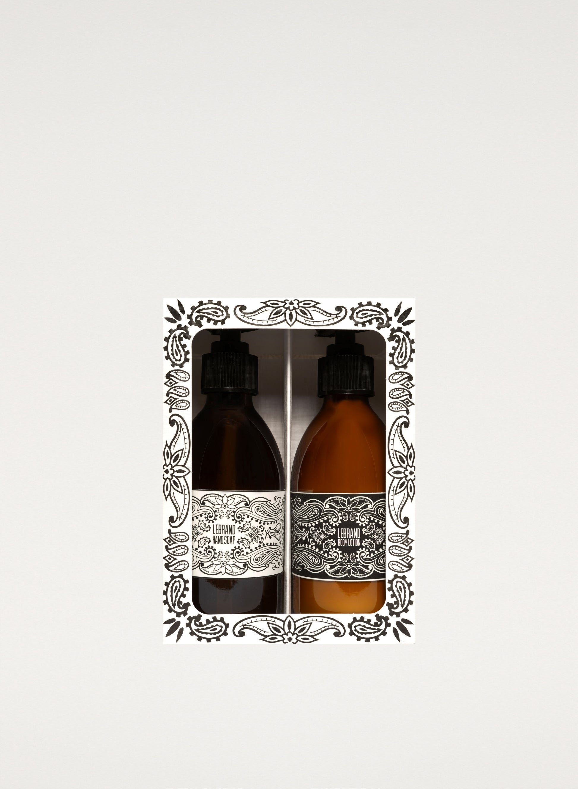 Zestaw składający się z mydła do rąk oraz balsamu do ciała, powstały we współpracy z marką La Bomba. Formuły oparte na naturalnych składnikach skutecznie oczyszczają, nawilżają i pielęgnują skórę, pozostawiając ją miękką, gładką i przyjemną w dotyku. Ekstrakt z baobabu wspiera naturalną równowagę skóry, chroniąc ją przed przesuszeniem i utratą elastyczności. Mydło delikatnie oczyszcza dłonie, nie naruszając bariery hydrolipidowej, natomiast balsam intensywnie nawilża i regeneruje skórę ciała, przywracając jej komfort i jedwabistą gładkość. Całość dopełnia wyjątkowa kompozycja zapachowa piżma, soczystego liczi oraz różowego zamszu i kadzidła.