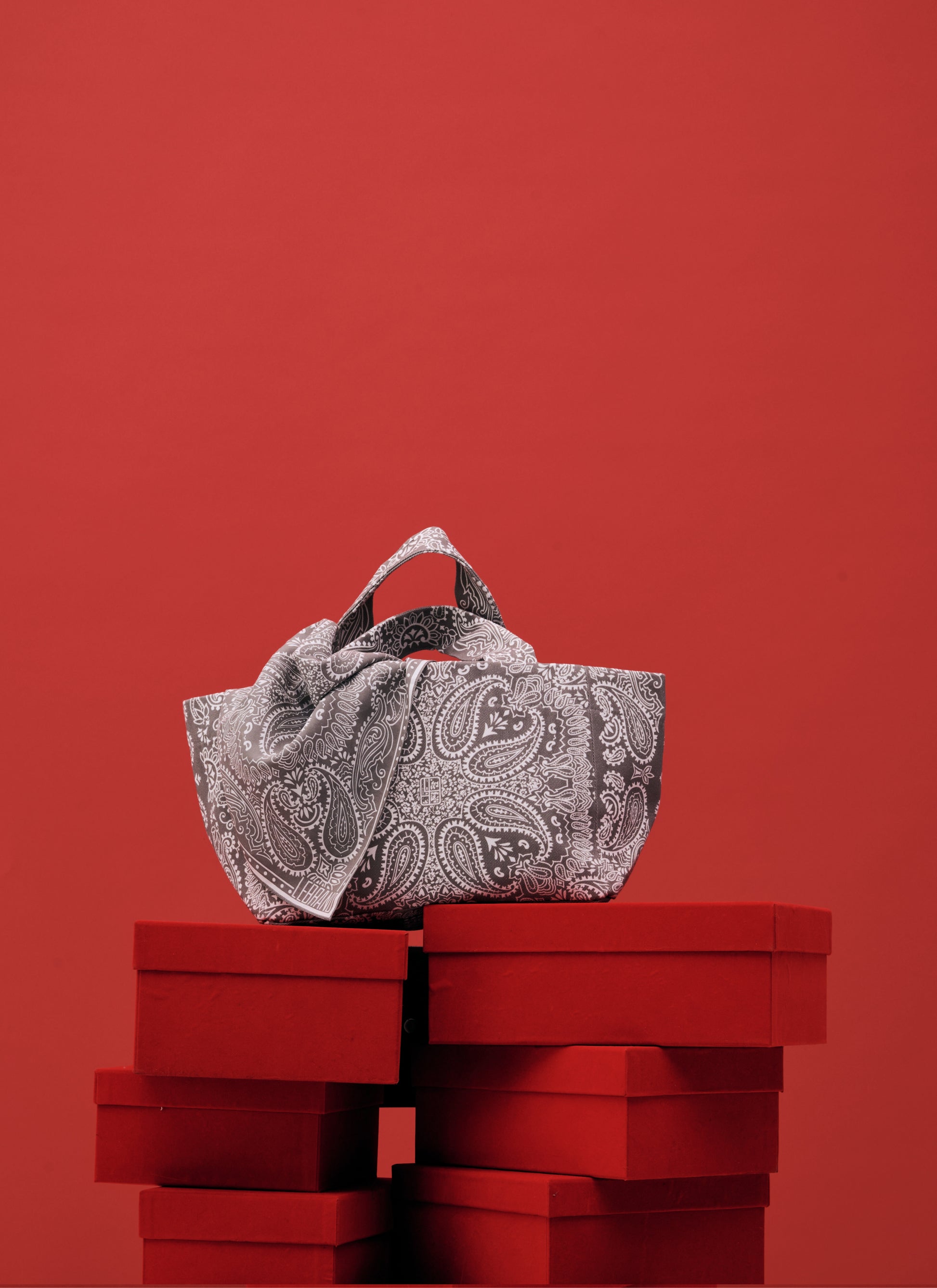 Zestaw zawiera bandanę mini i torebkę Mia w czarnym kolorze. Bandana została wykonana ręcznie z lekkiej wiskozy, jest wykończona szwem parasolkowym. Torebka wykonana z grubego bawełnianego płótna, nie posiada zapięcia. W przypadku ewentualnego zwrotu zestaw musi zostać zwrócony w całości.