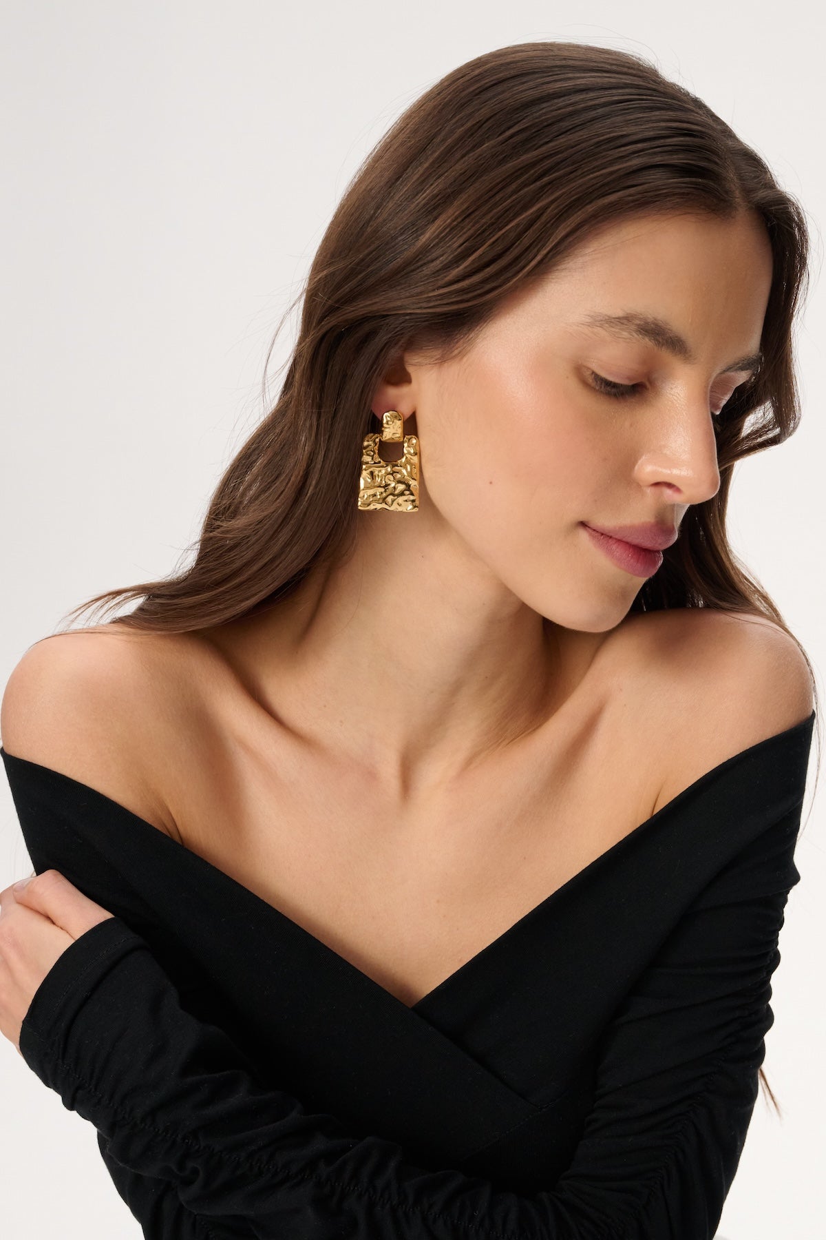 Stainless steel earrings with an irregular texture in gold color - Polly