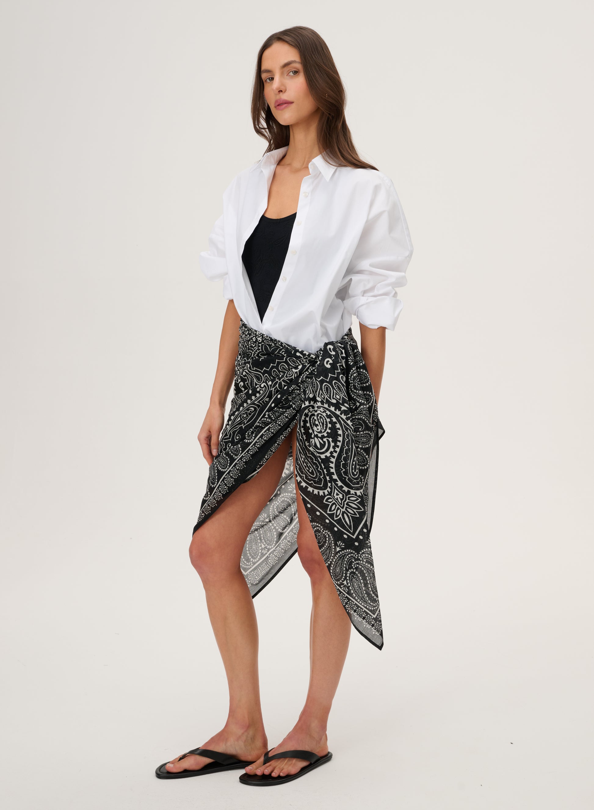 Light pareo, made of delicate cotton printed in a bandana pattern.