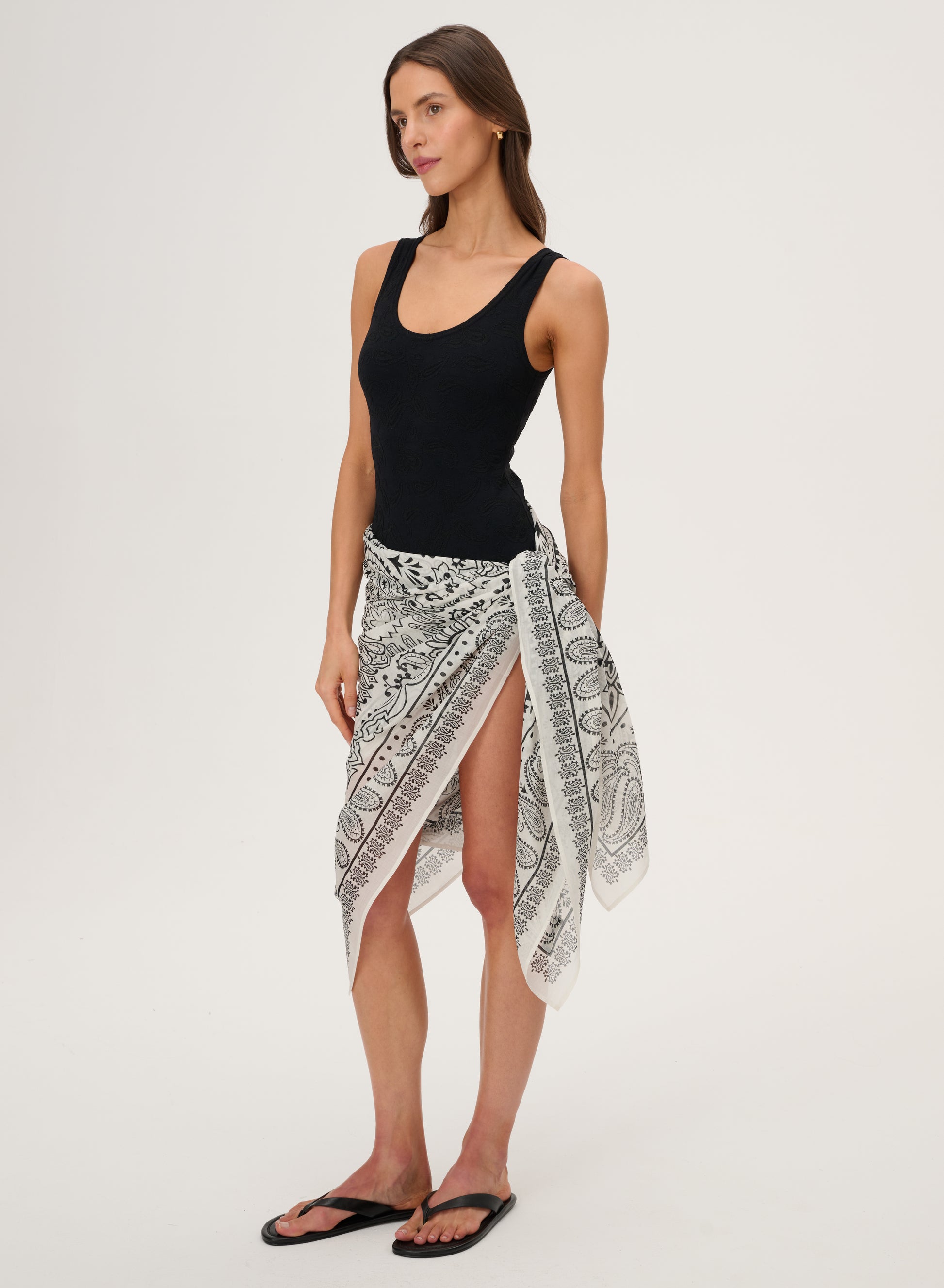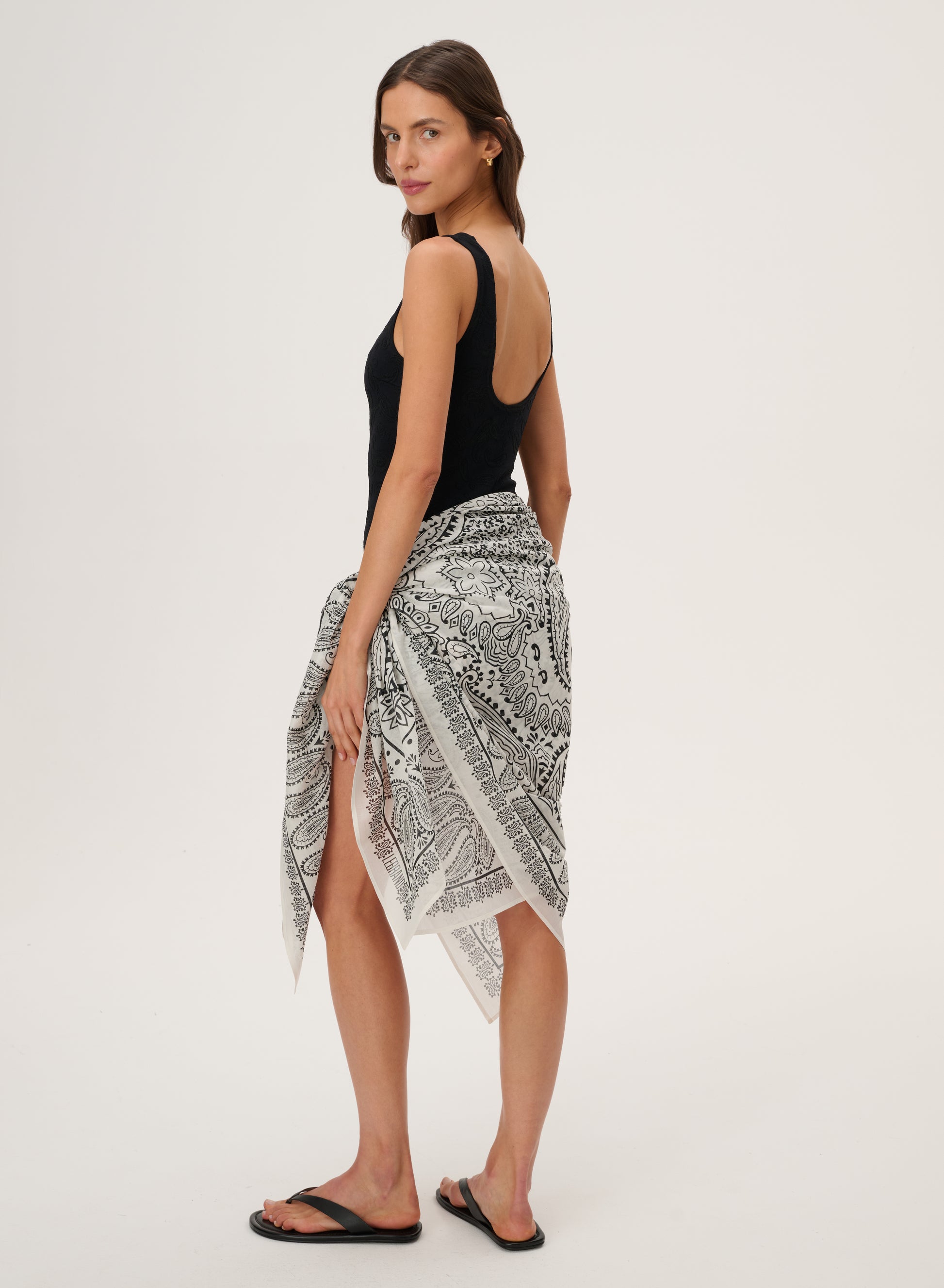 Light pareo, made of delicate cotton printed in a bandana pattern.