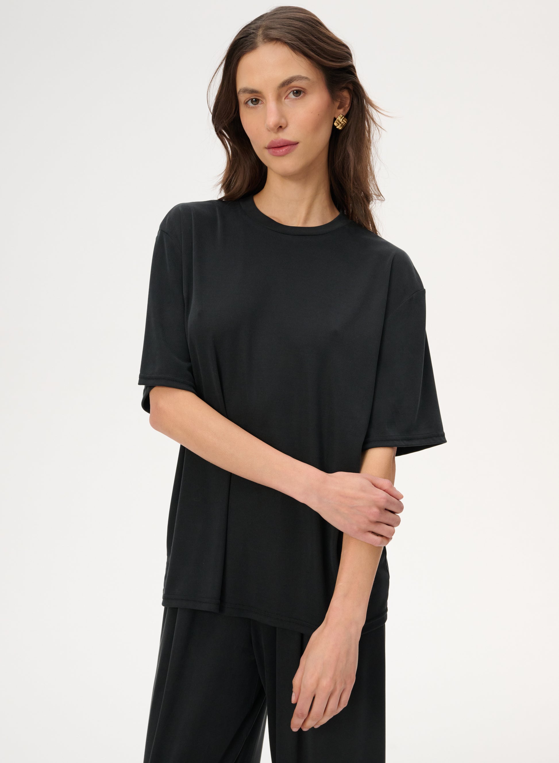 Black T-shirt made of delicate knit fabric - Ariana