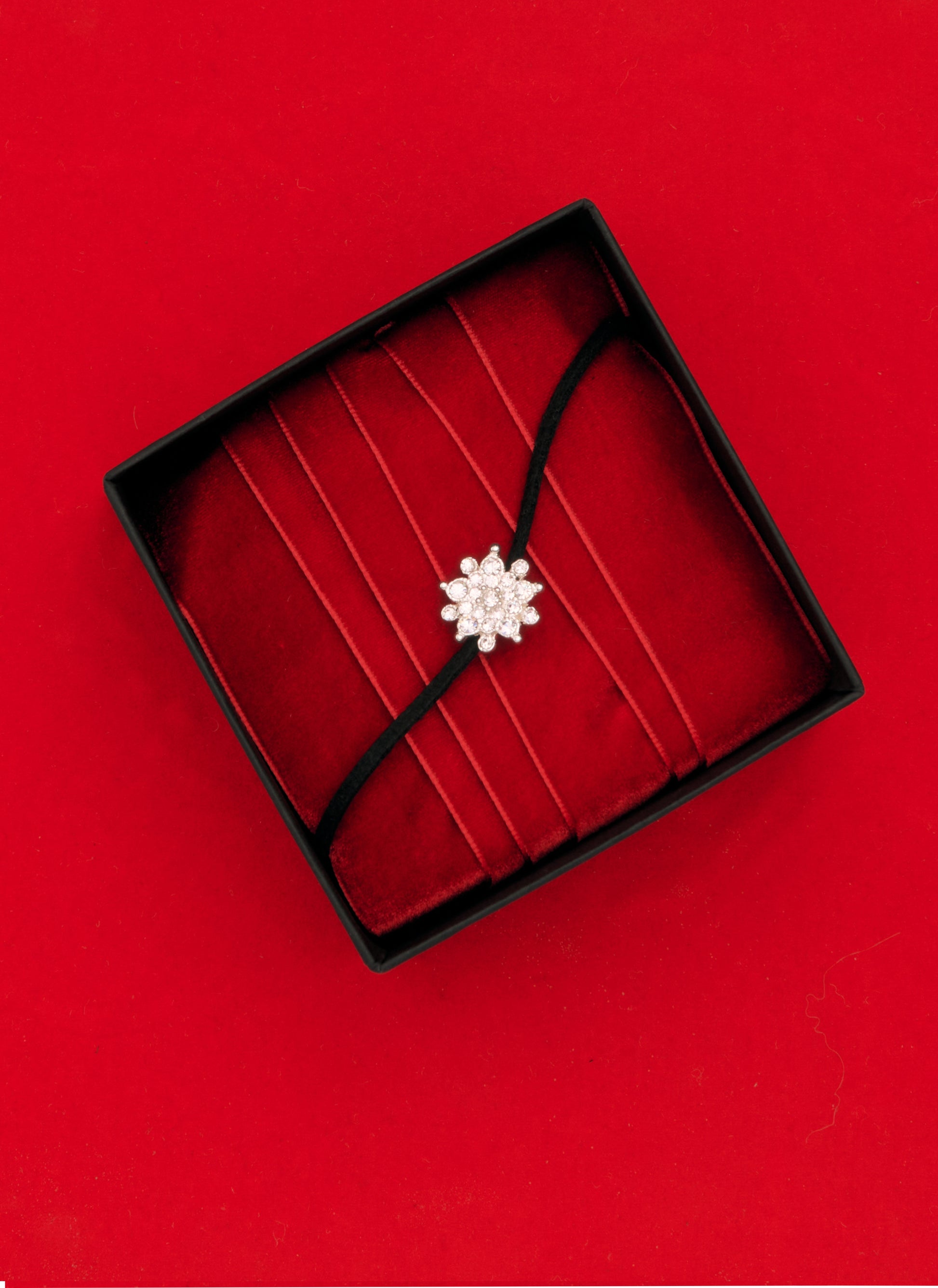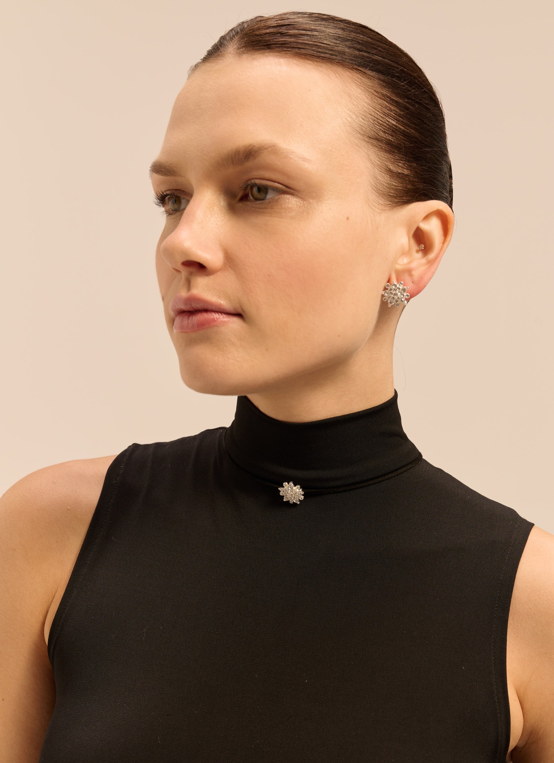 Ręcznie robiony naszyjnik w stylu choker, zdobiony zawieszką w kształcie gwiazdki. Wykonany ze stopu jubilerskiego cyny i srebra, posrebrzanego srebrem 999 i pokrytego ceramiką, która zabezpiecza przed ścieraniem i zmianą koloru. Zdobiony kryształkami Preciosa.