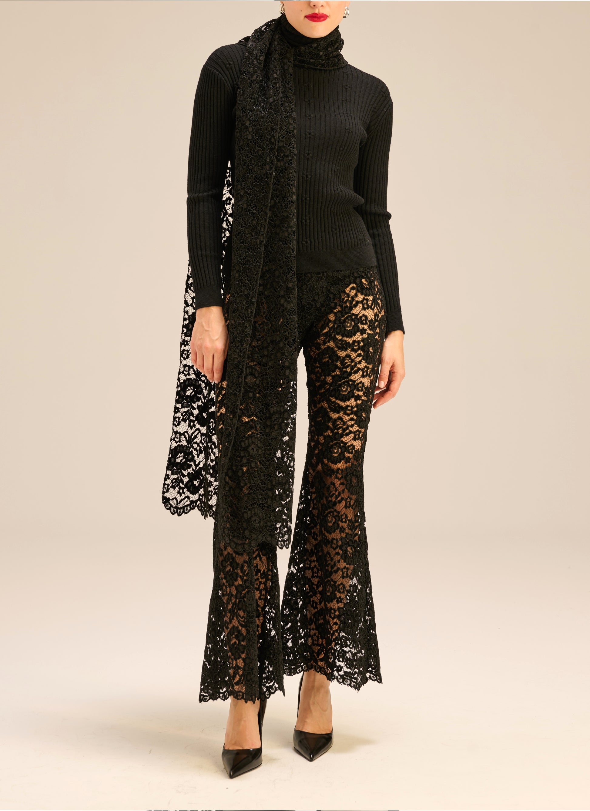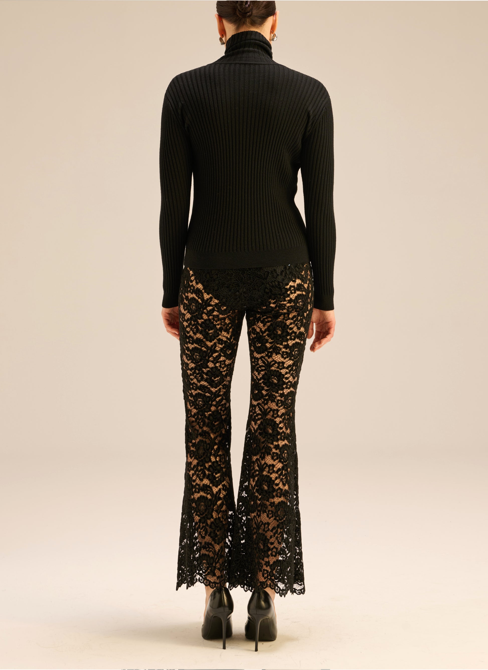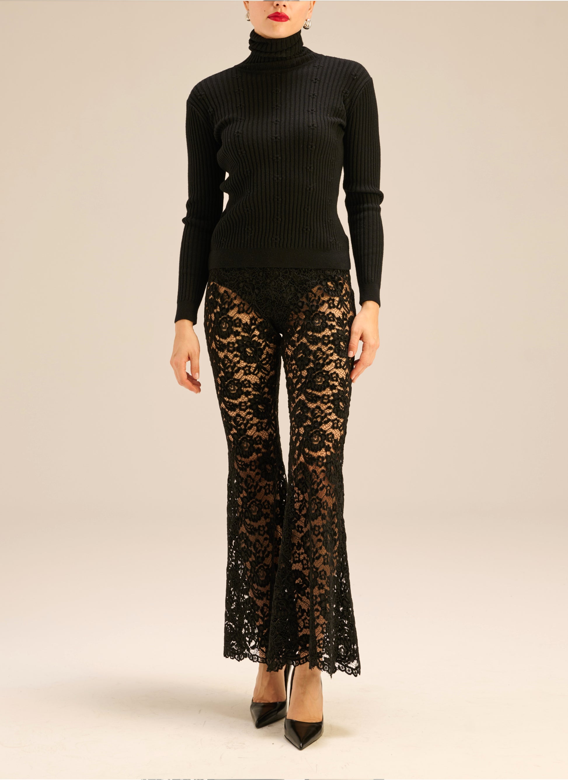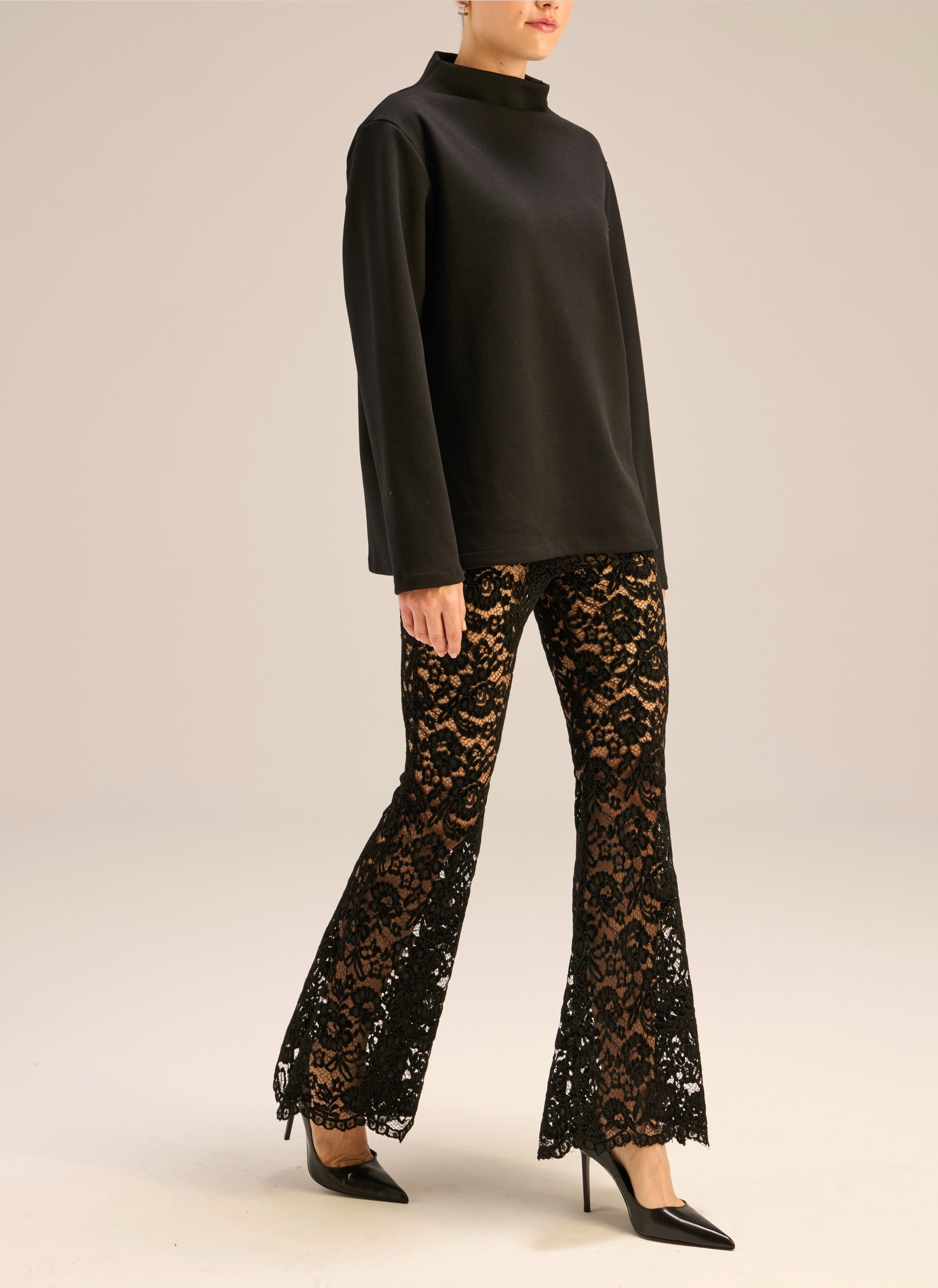 Spodnie z koronki z rozszerzaną nogawką czarne - Warren
