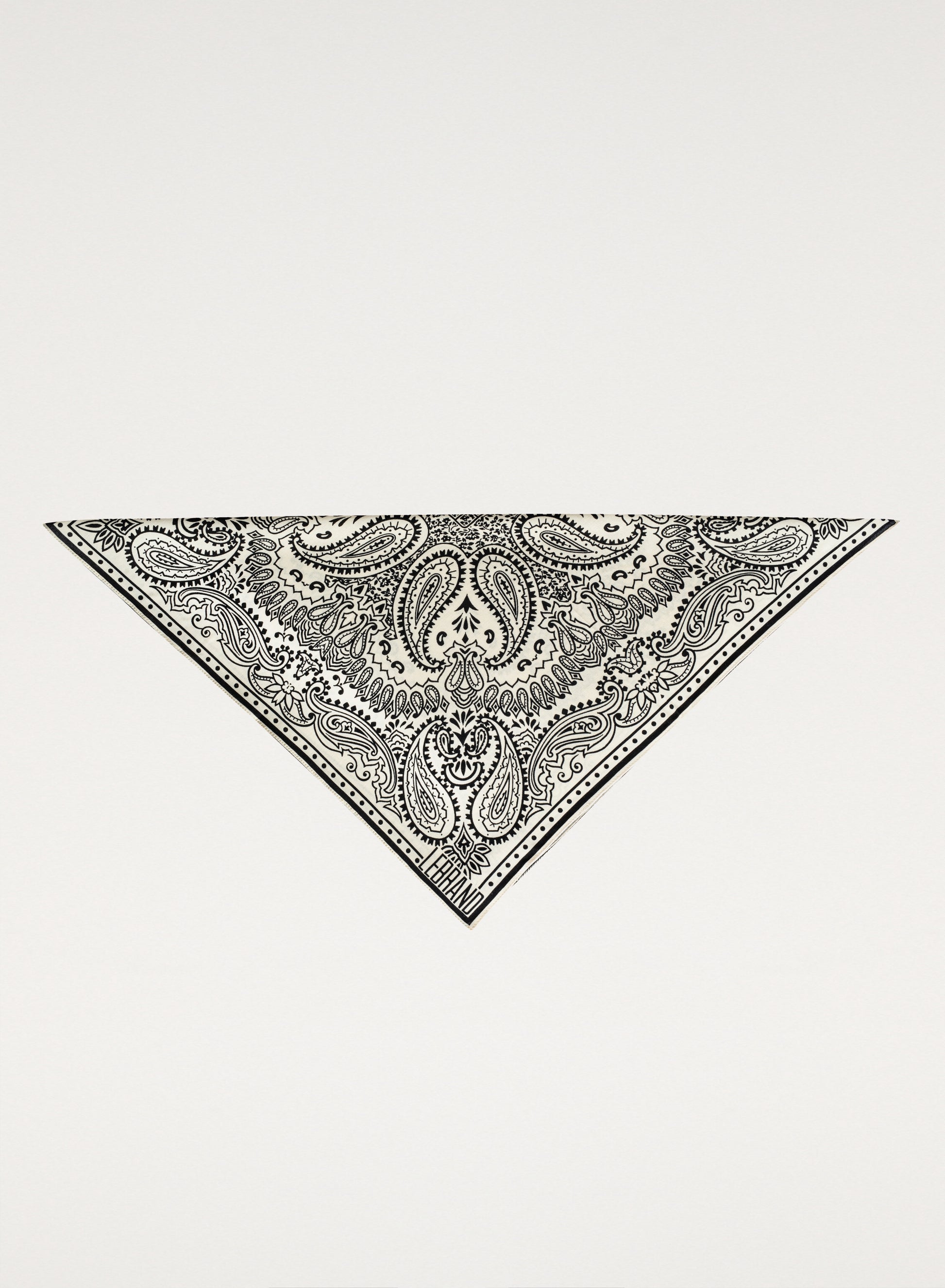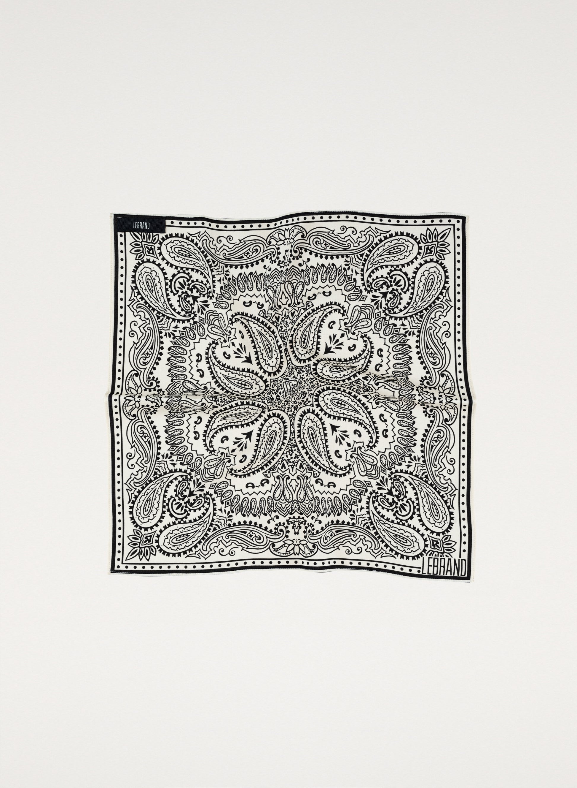 Універсальна бандана міні-розміру, оброблена вручну, виготовлена з м’якої віскози кольорів екрю та чорного.