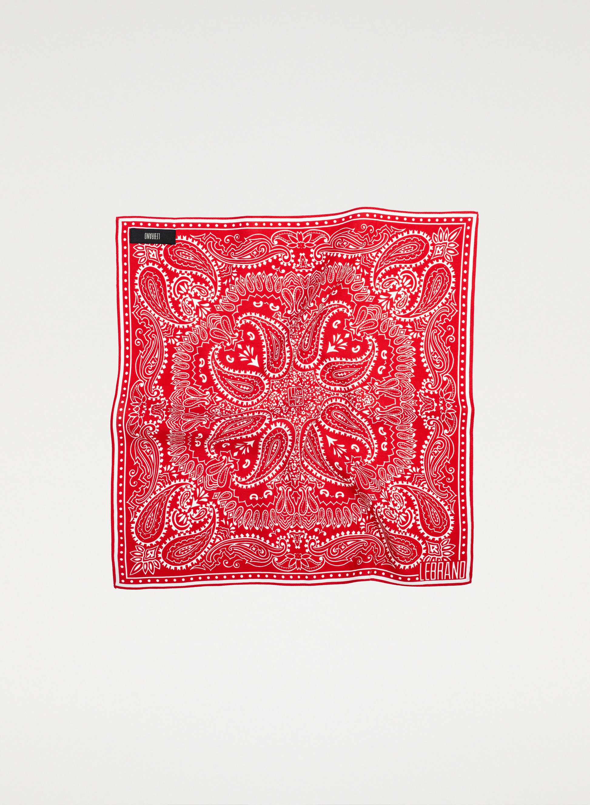 Універсальна міні-бандана ручної обробки з м'якої віскози червоного кольору з білим принтом.