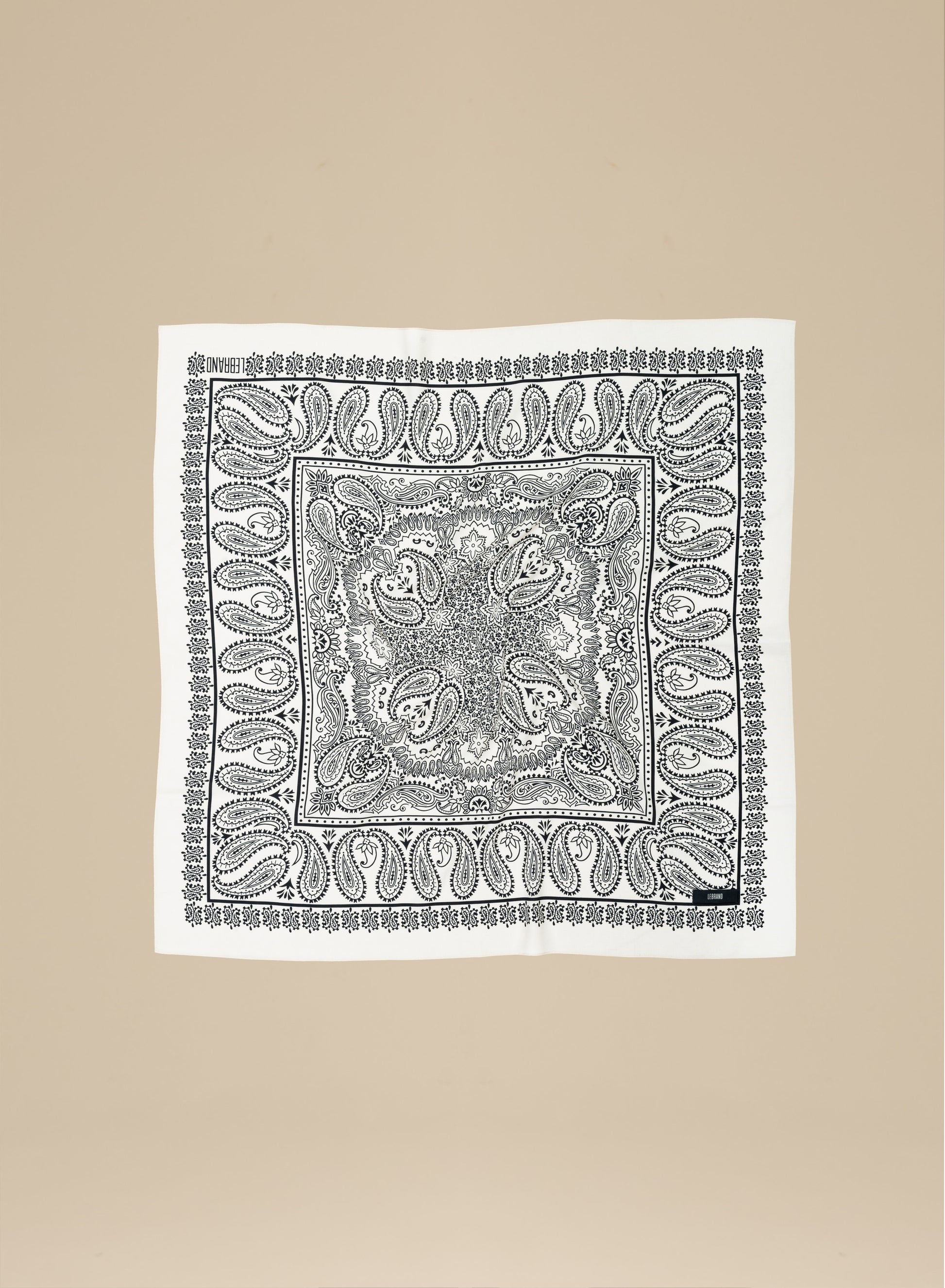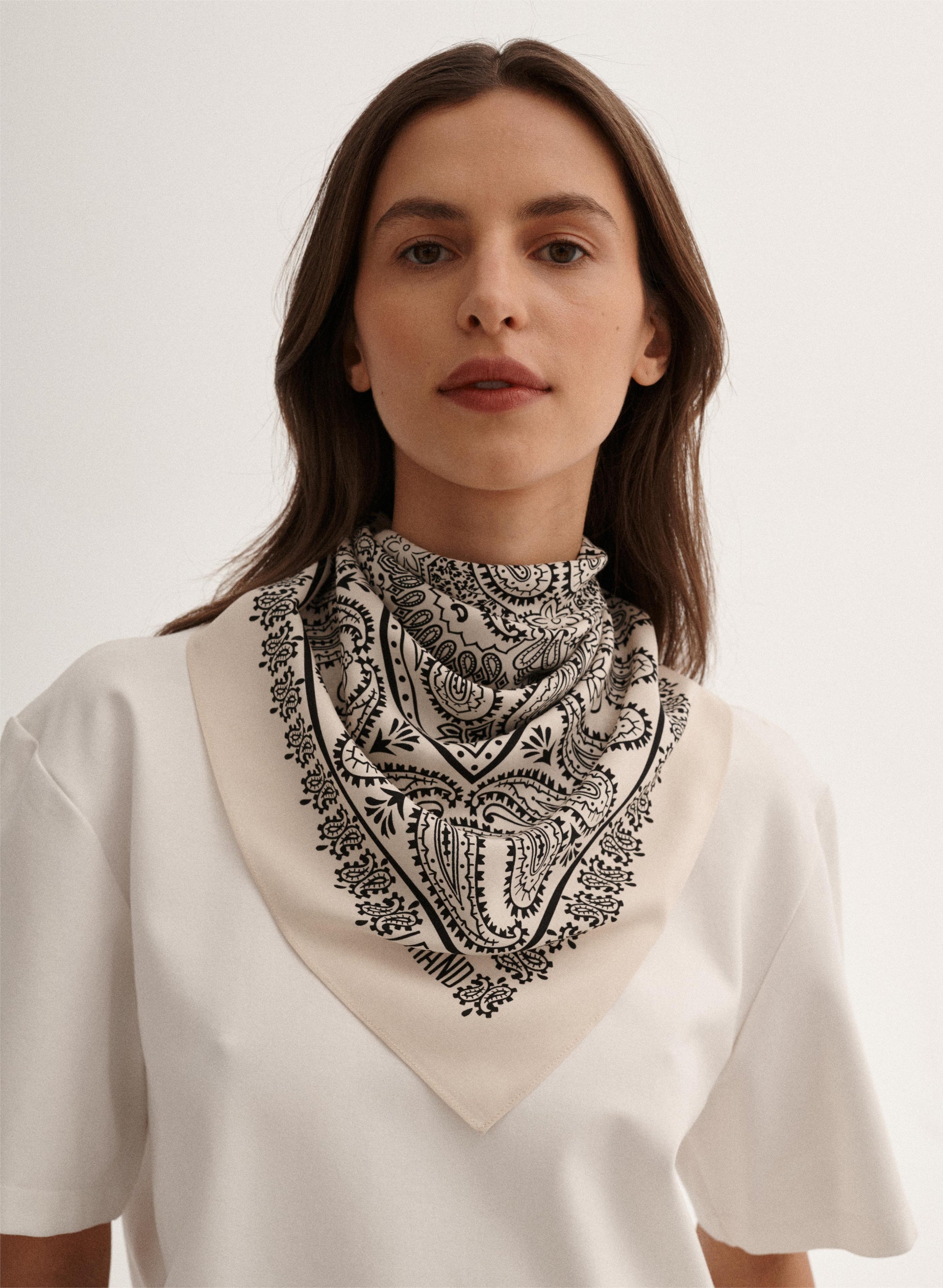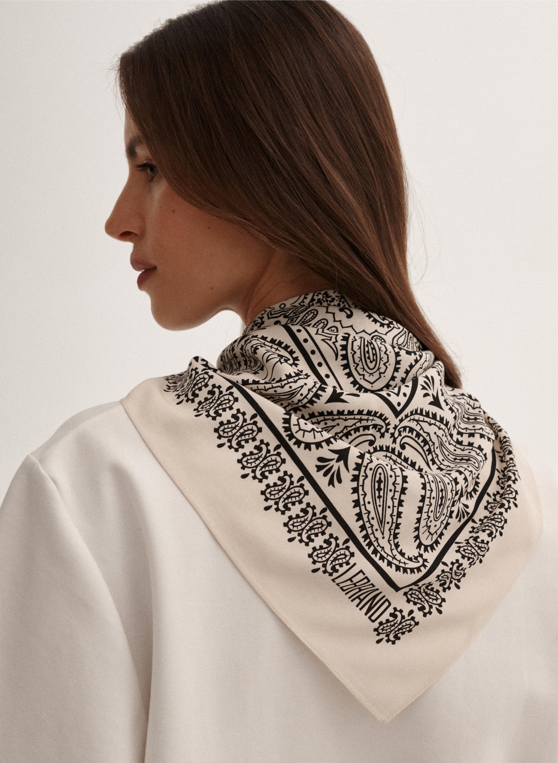 Універсальна бандана ручної обробки з м'якої віскози кольору екрю та чорного.