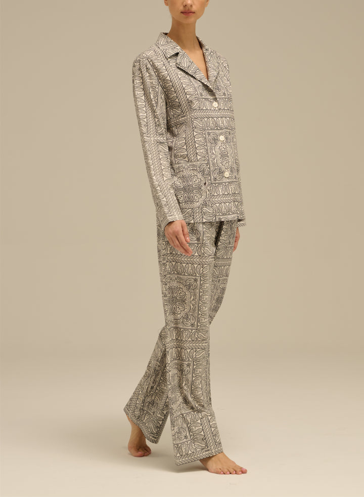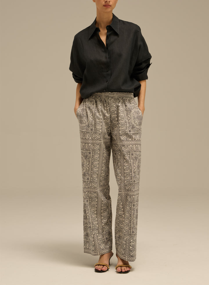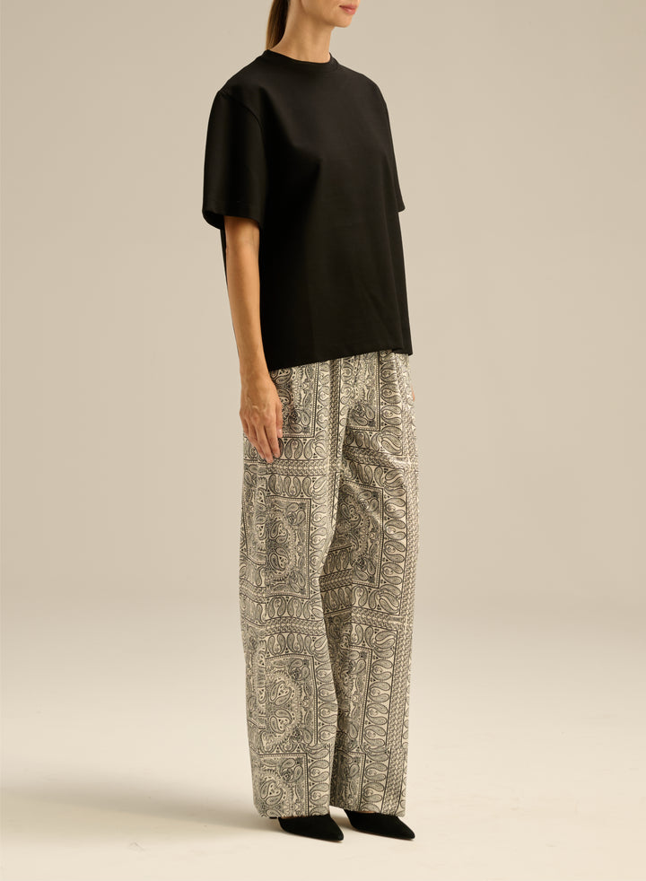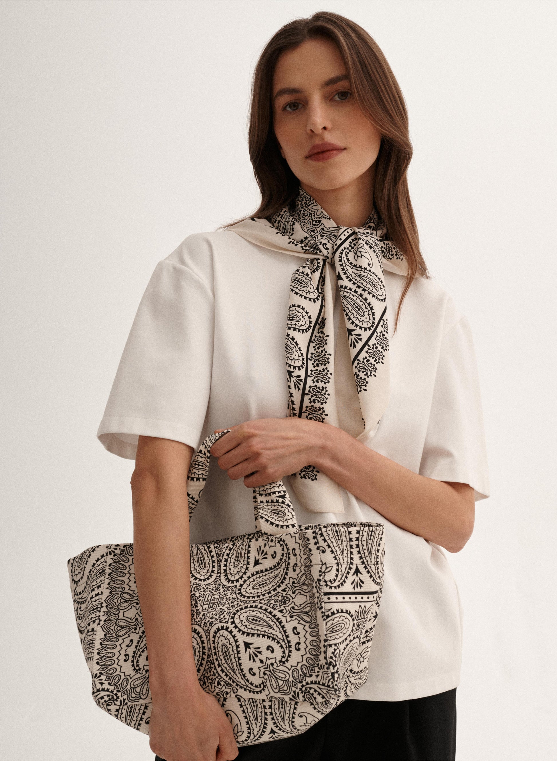 Універсальна бандана ручної обробки з м'якої віскози кольору екрю та чорного.
