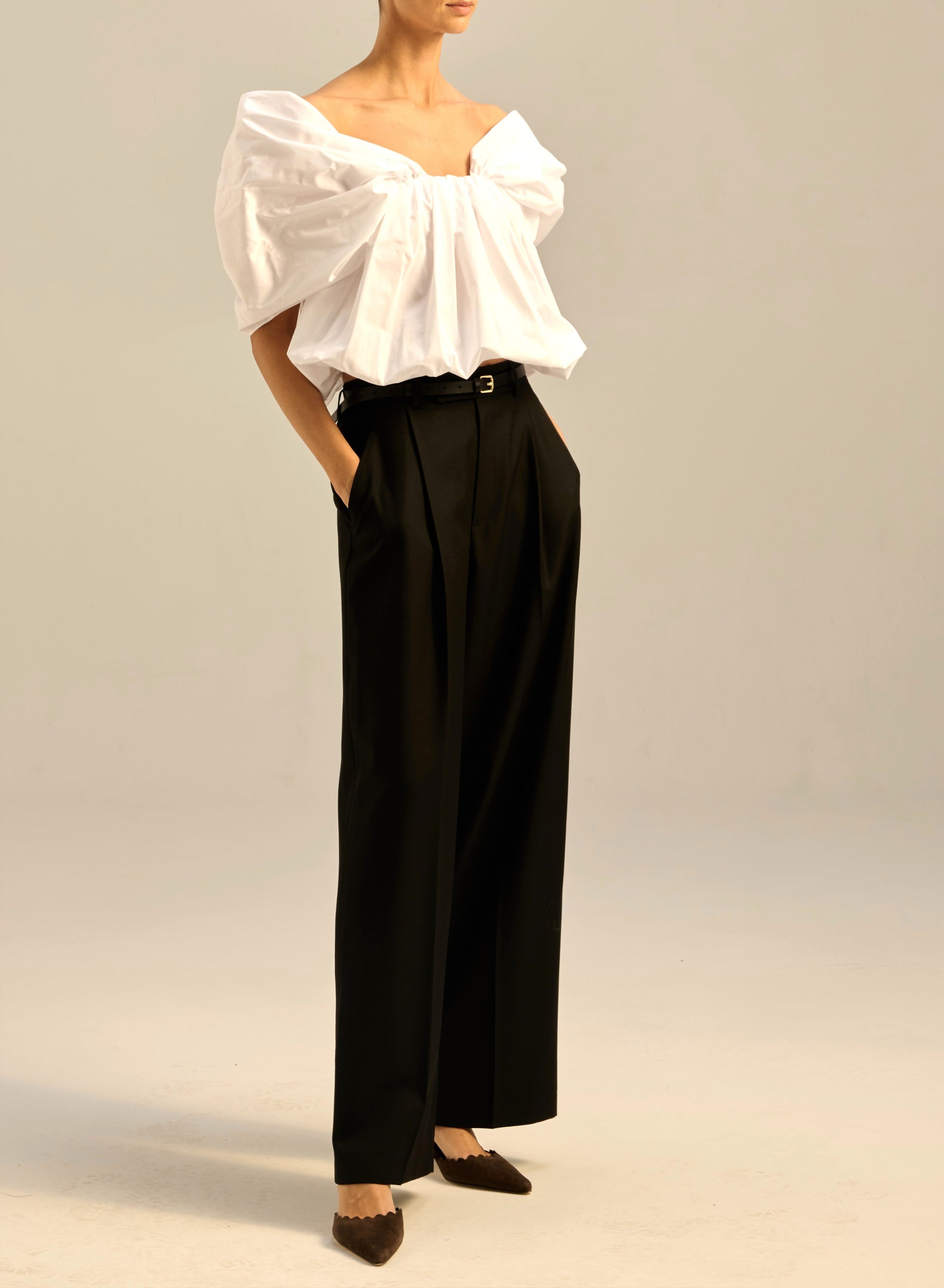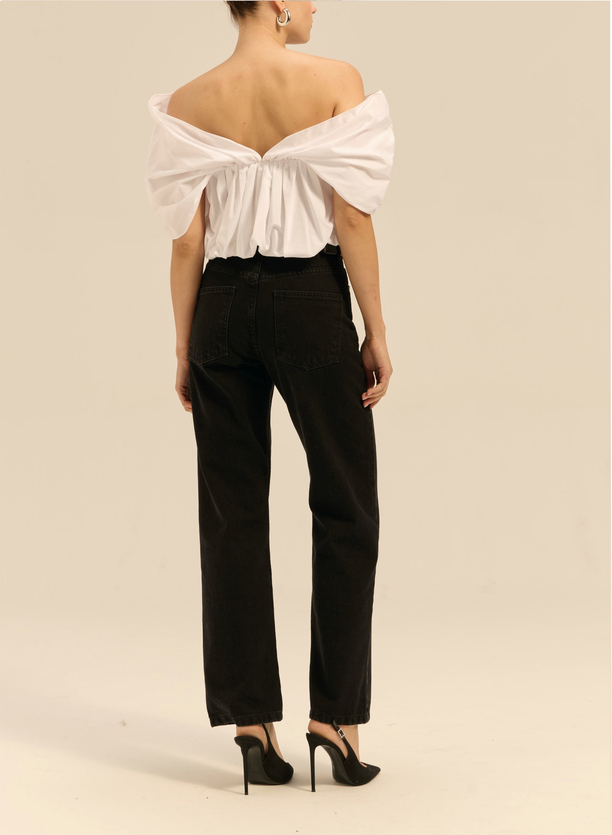 Короткий топ у формі бульбашки, який відкриває плечі. Виготовлений з білої бавовни. Має спадаючі бретелі та еластичний низ.