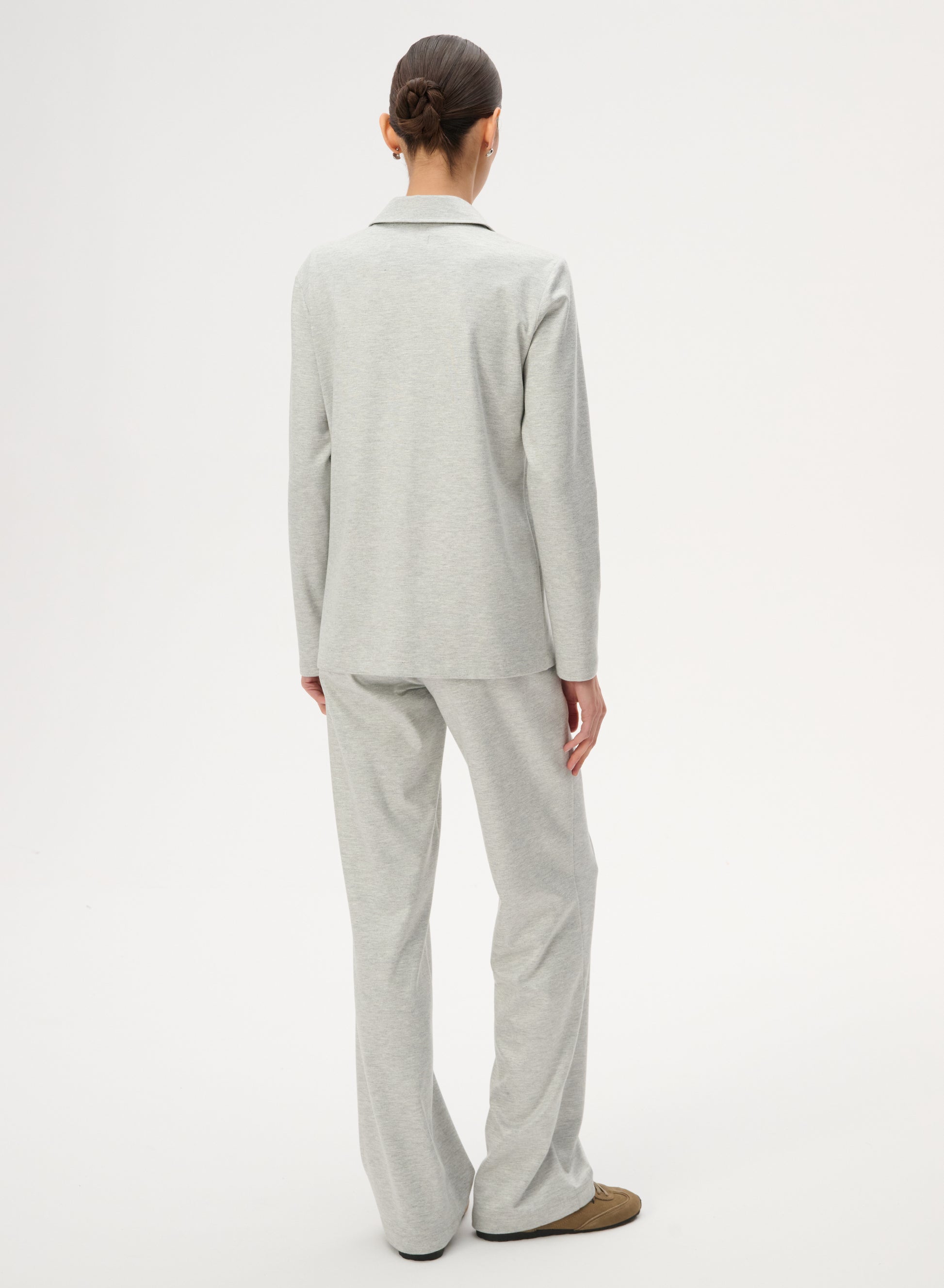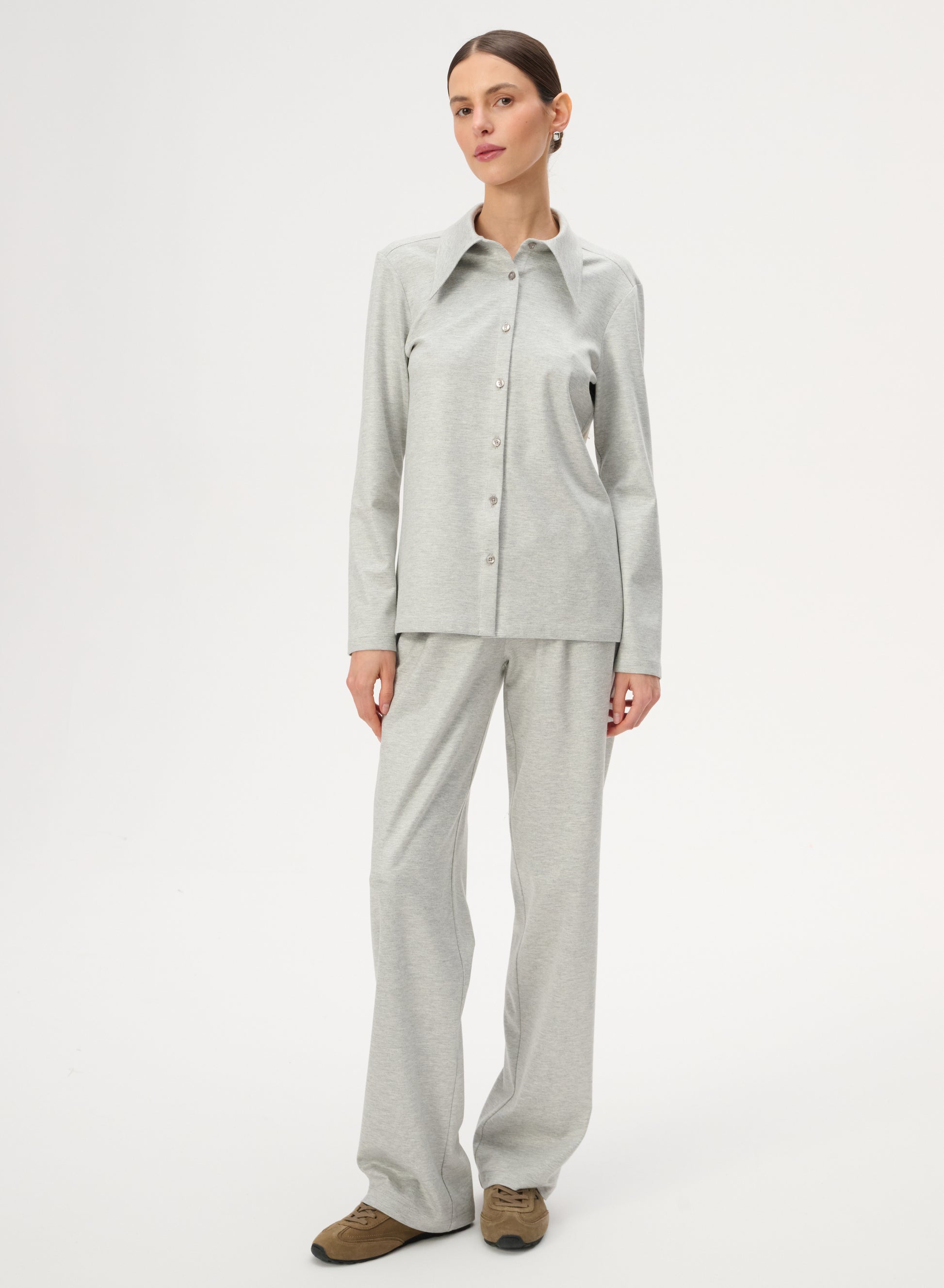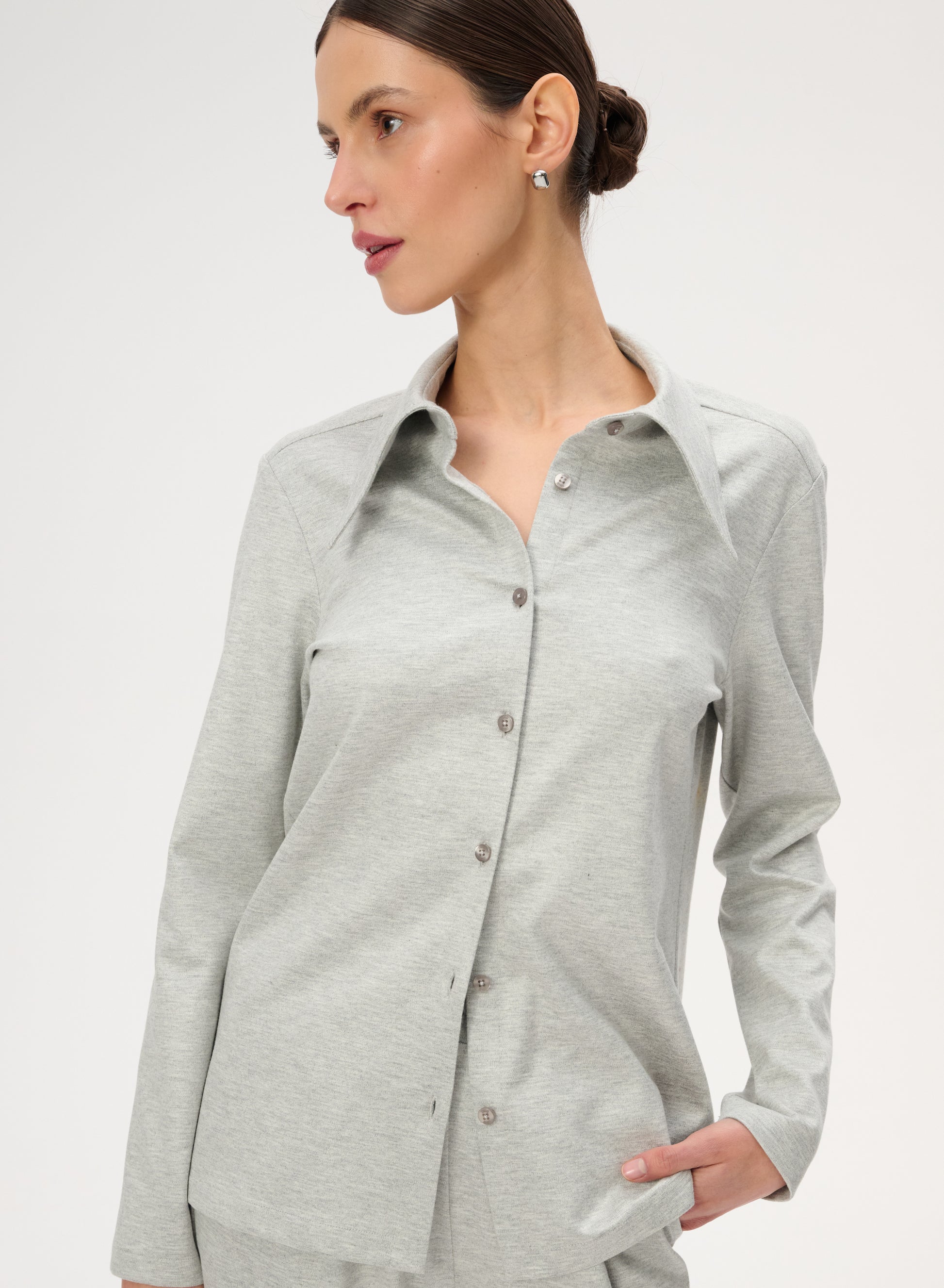 Prosta koszula wykonana z miękkiej, elastycznej dzianiny, o dopasowanym kroju w kolorze jasnoszarym.