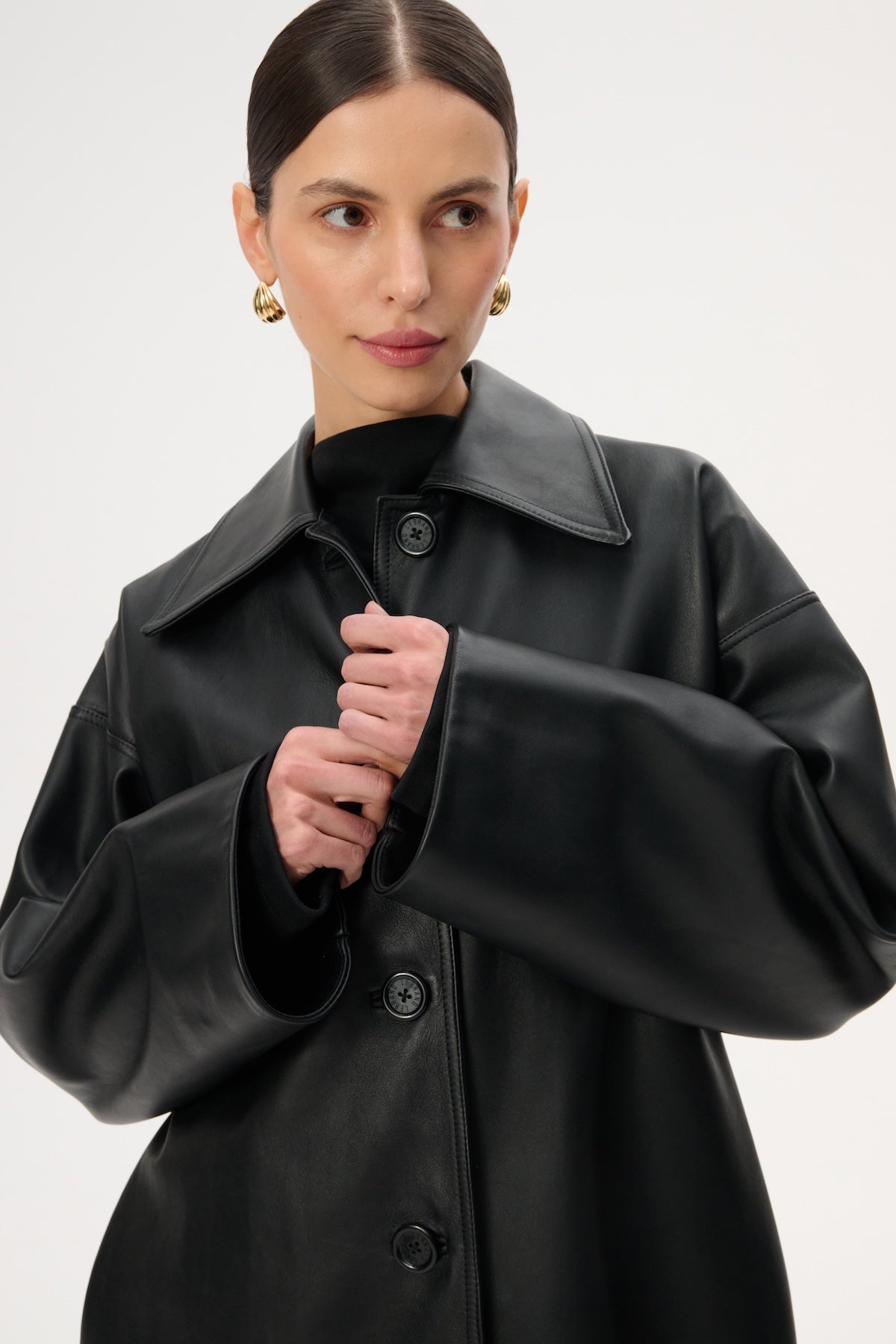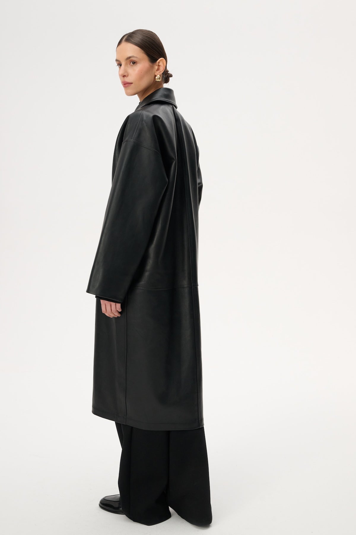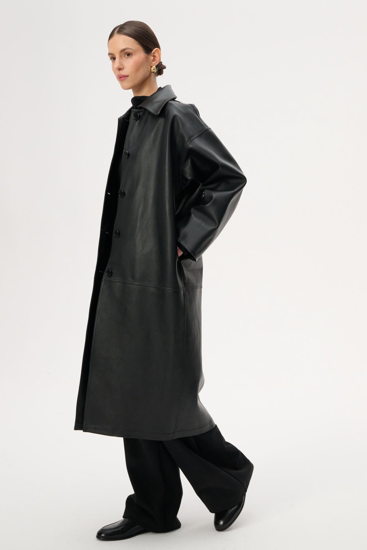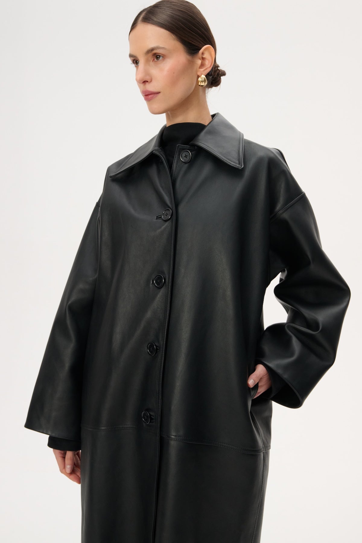 Шкіряне міді-пальто вільного крою - Jose