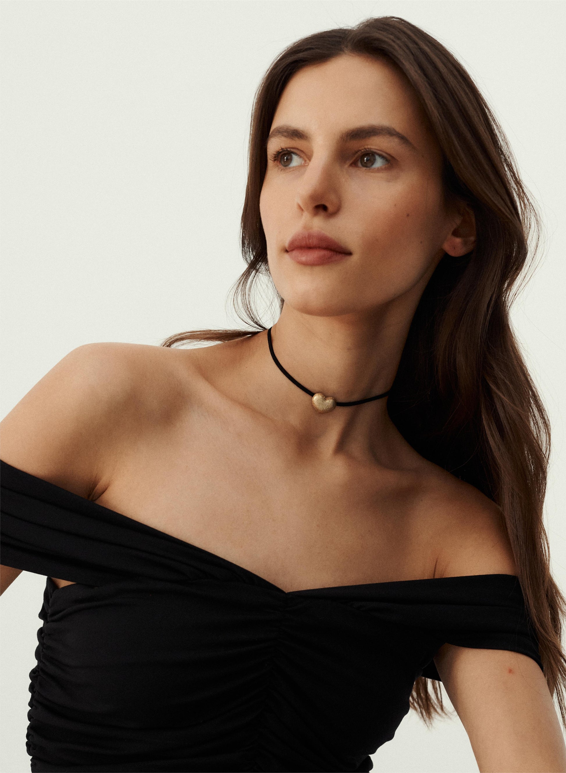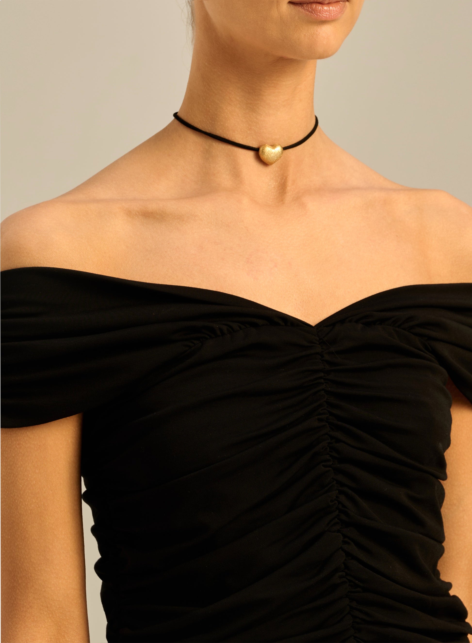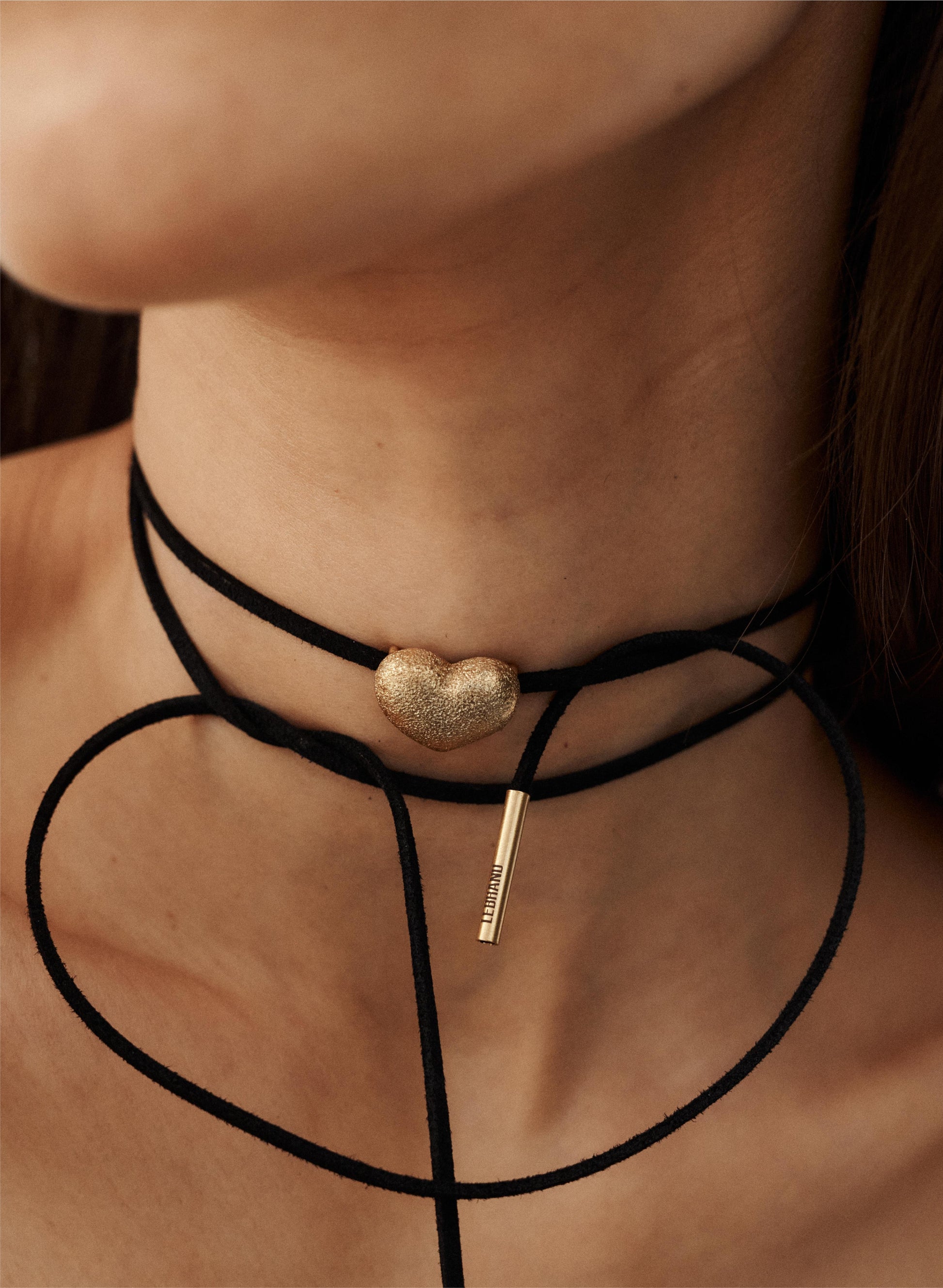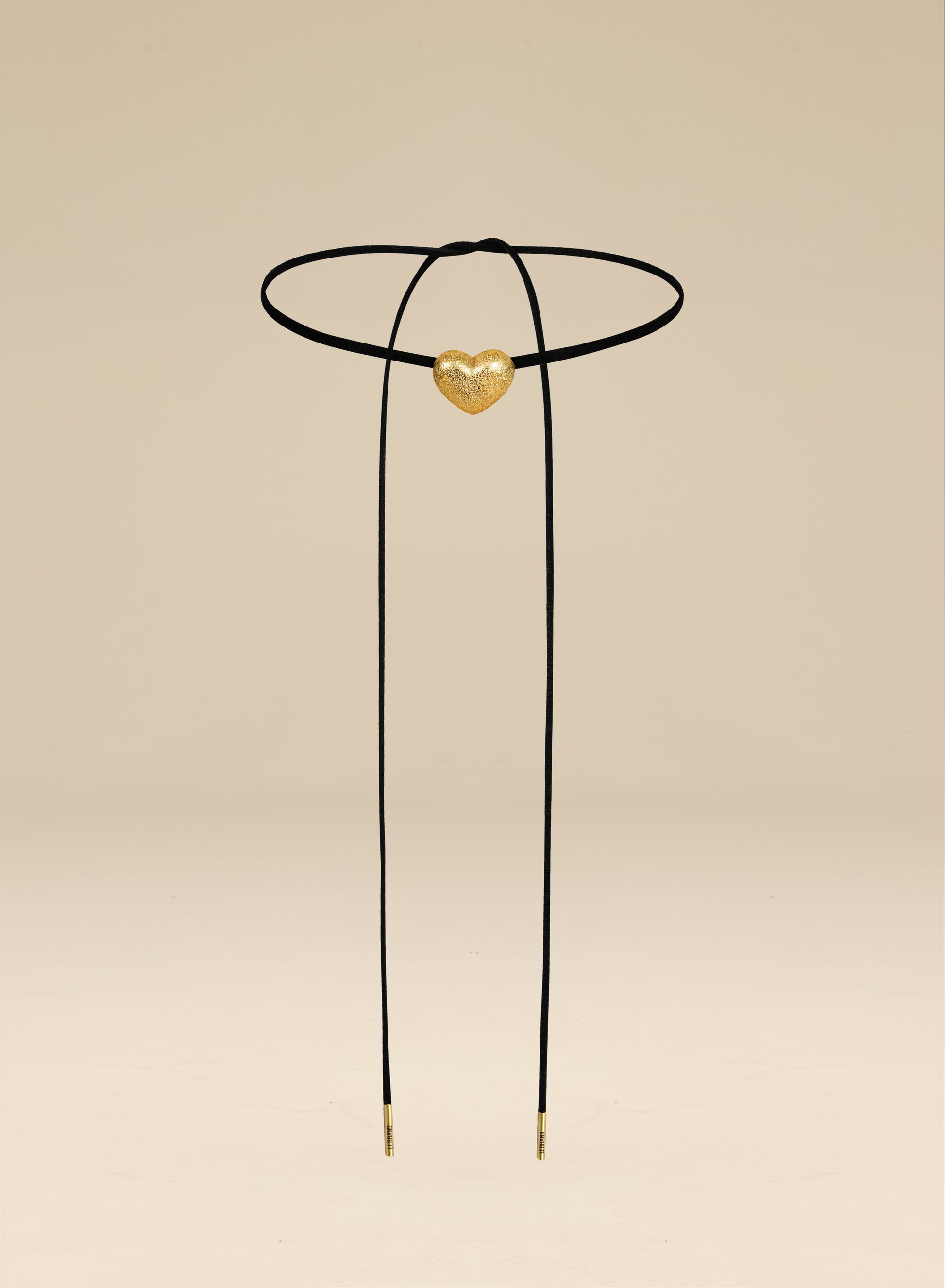 Кольє ручної роботи в стилі чокер, прикрашене кулоном у формі серця, виготовлене з ювелірного сплаву олова та срібла, позолочене 24-каратним золотом і покрите керамікою, яка захищає від стирання та зміни кольору.