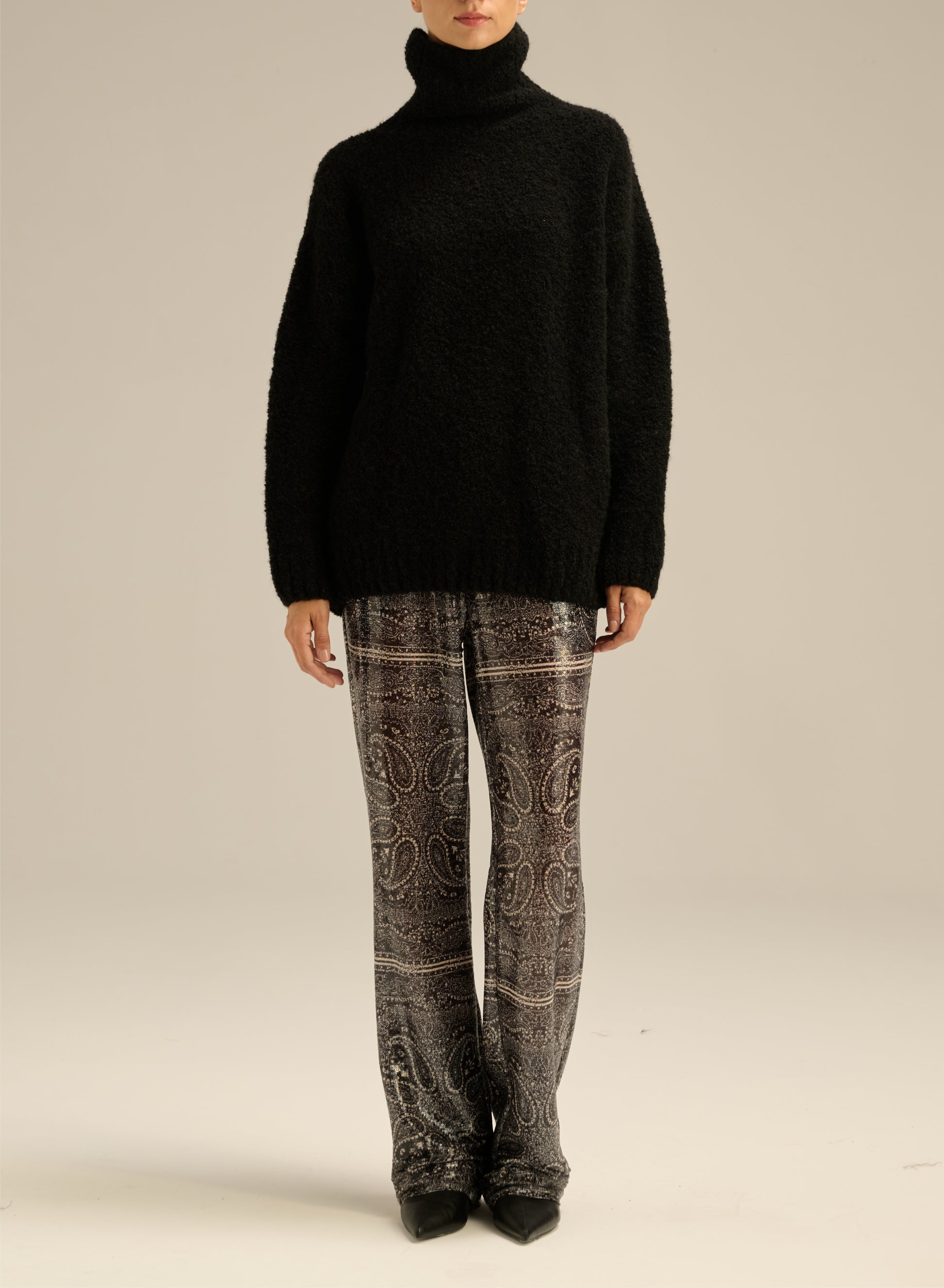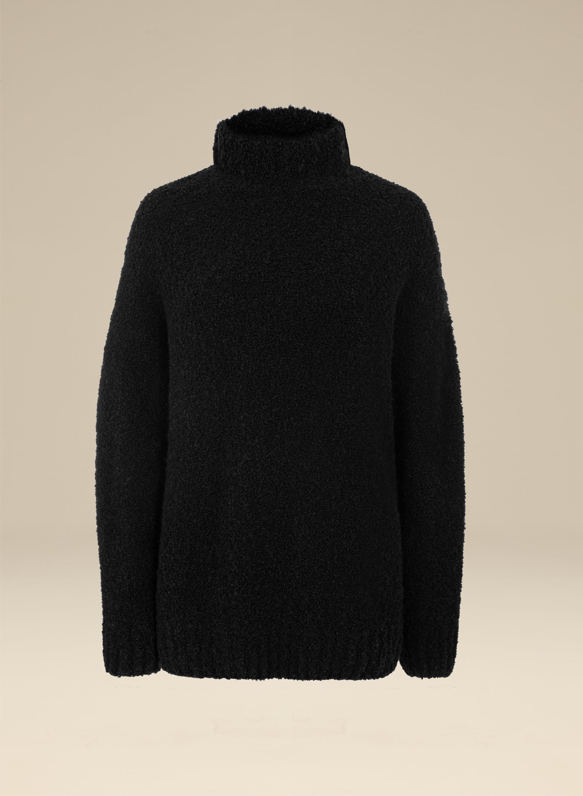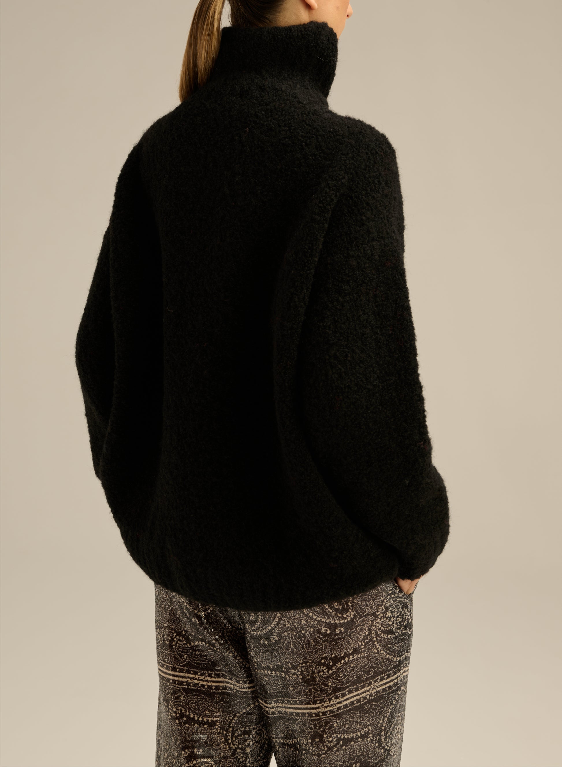 Вільний светр з високою водолазкою з м'якого трикотажу. Має витончену манжету внизу та на рукавах.