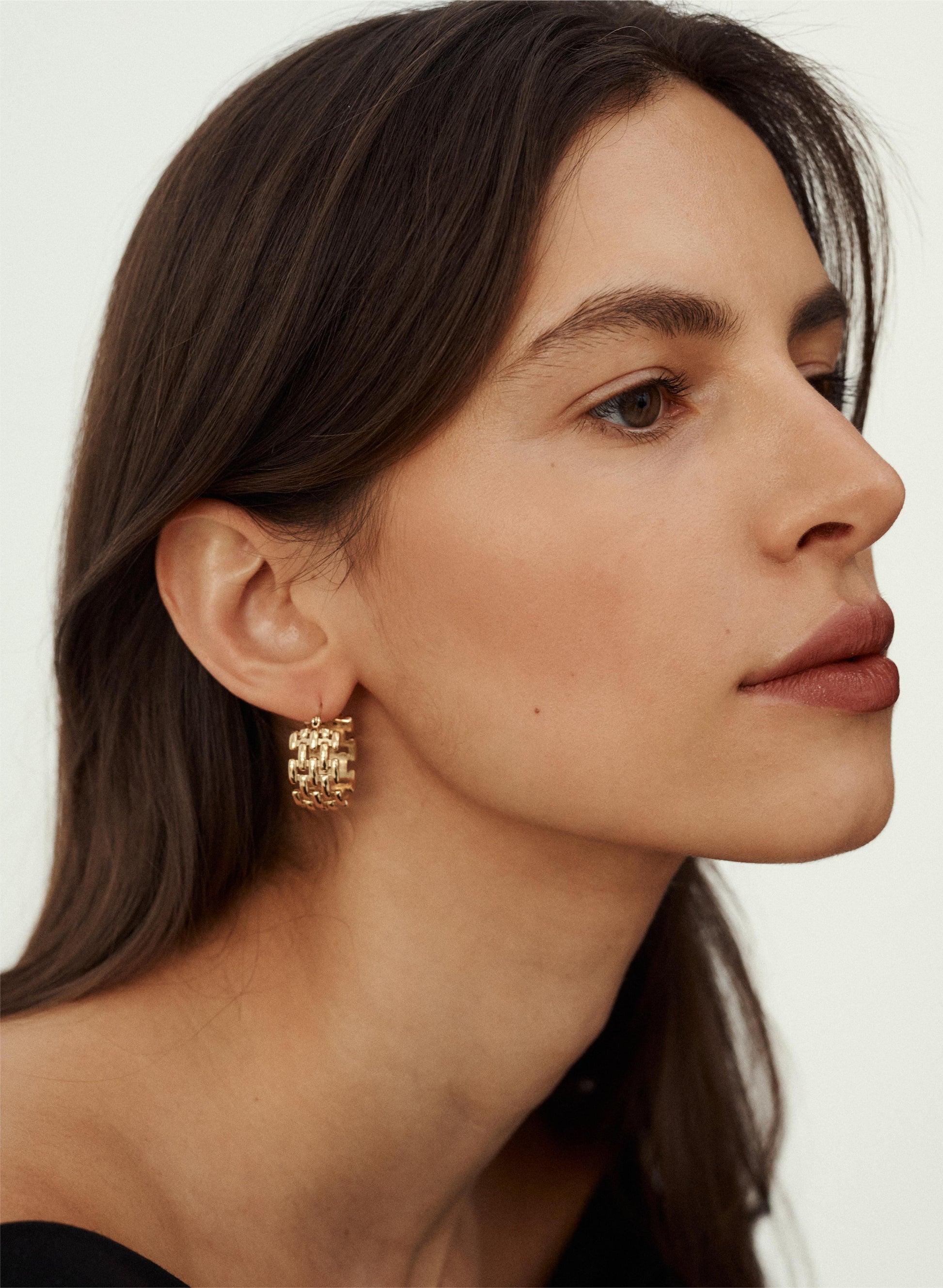 Круглі сережки з ажурної хірургічної сталі золотого кольору. З міркувань гігієни товар не підлягає поверненню.