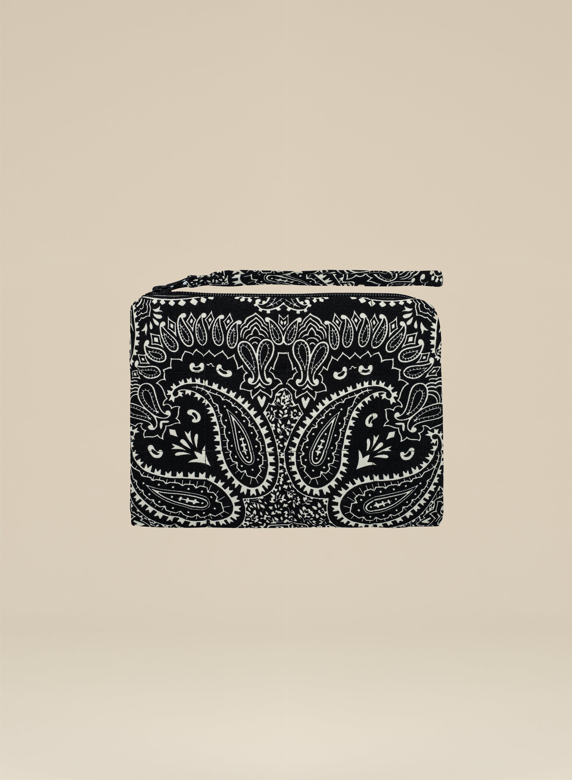 Міні-косметичка з м'якої віскози чорного та екрю. Застібається на блискавку, всередині є невелика кишенька.