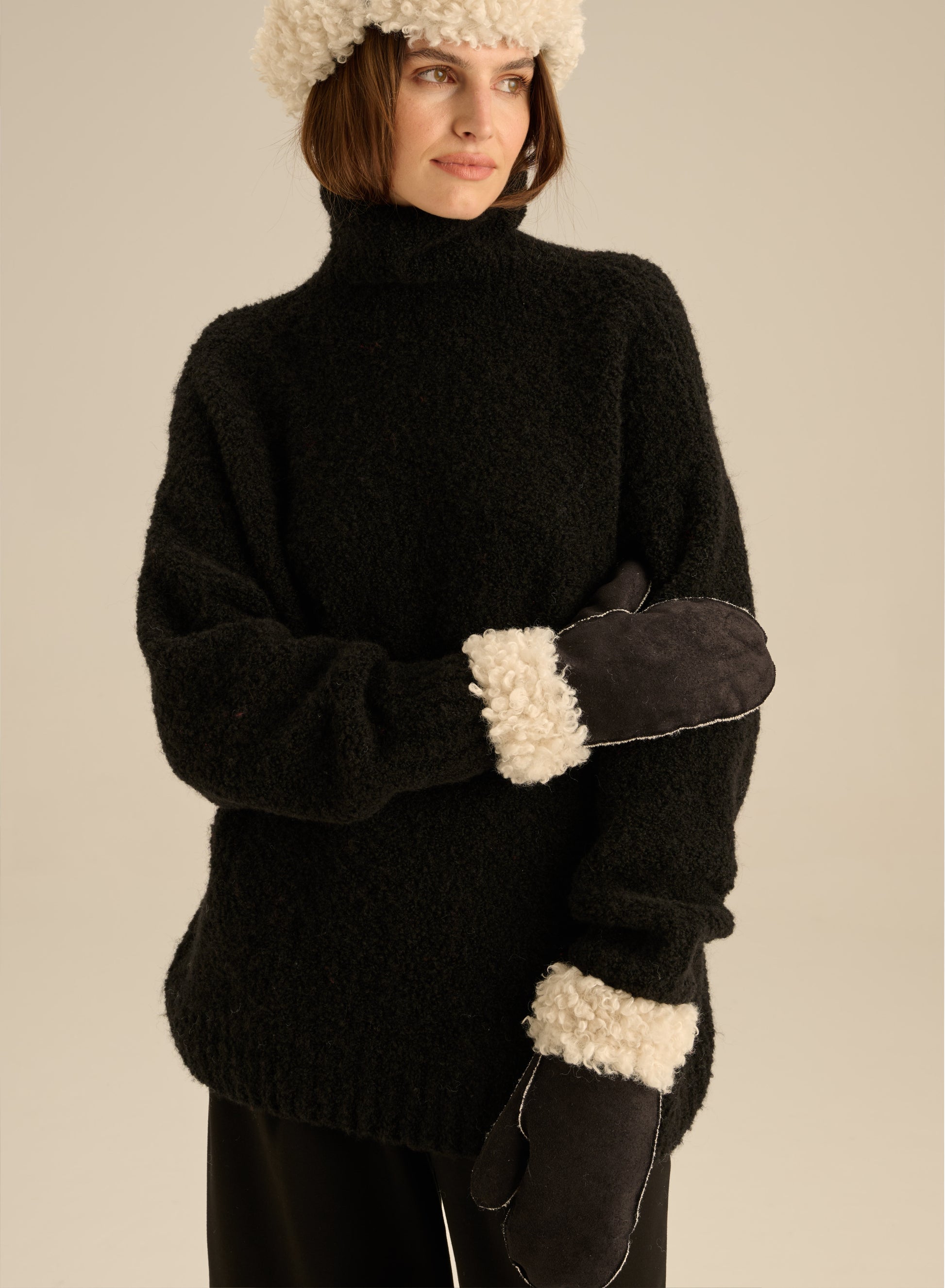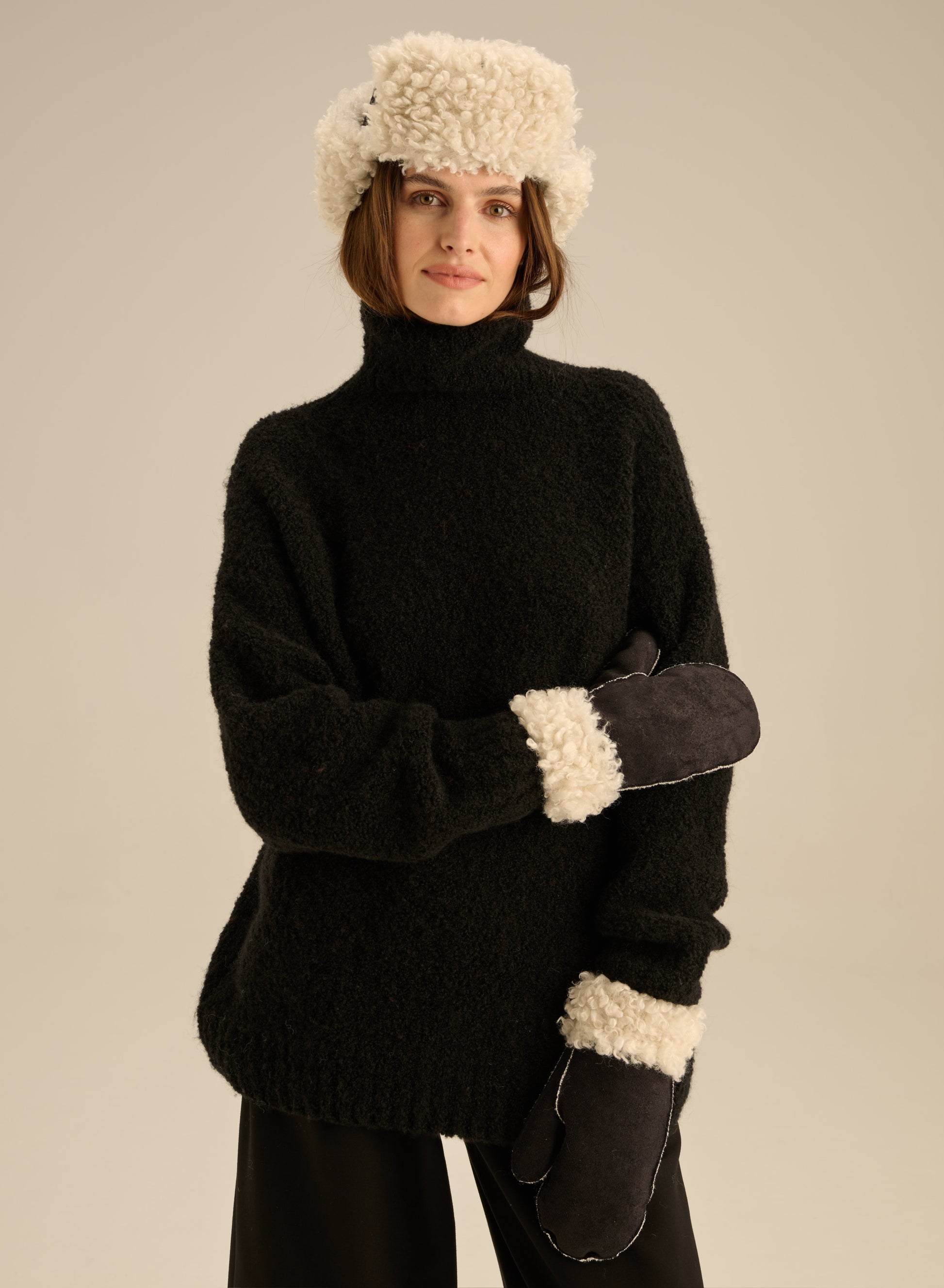 Широкі рукавиці з теплої тканини, що імітує овчину.