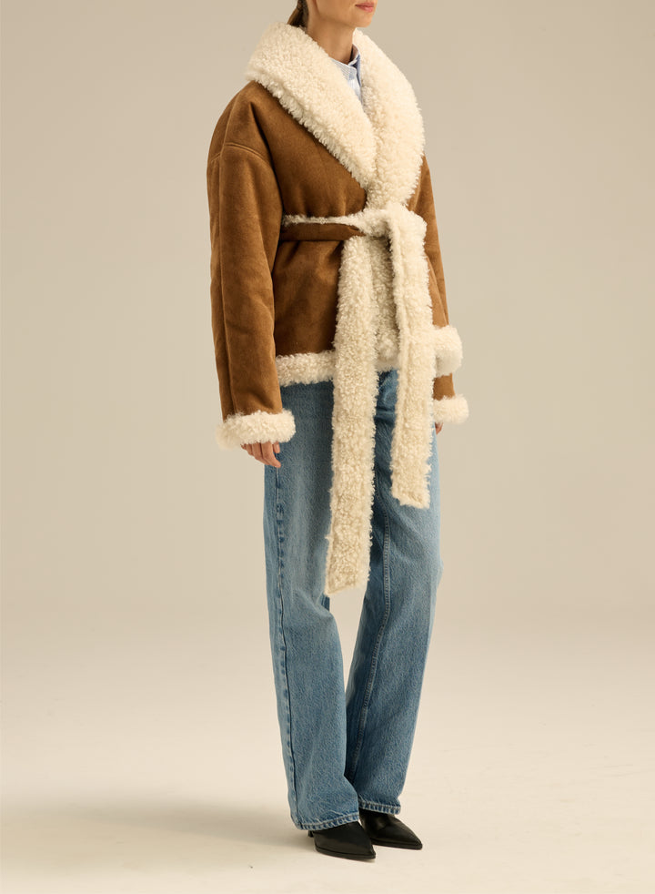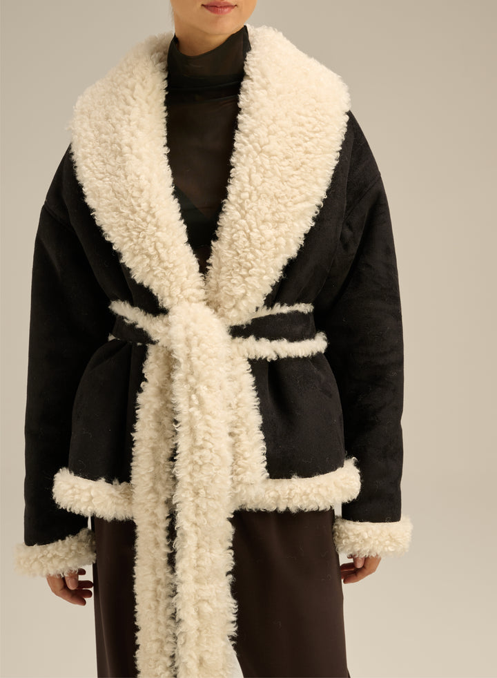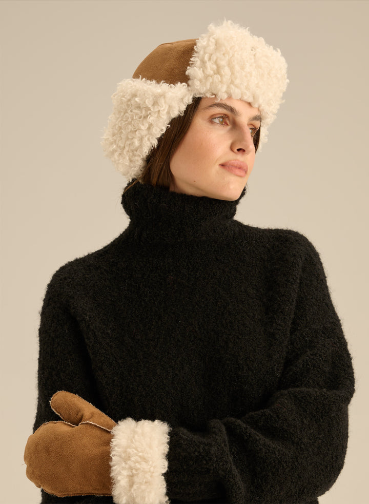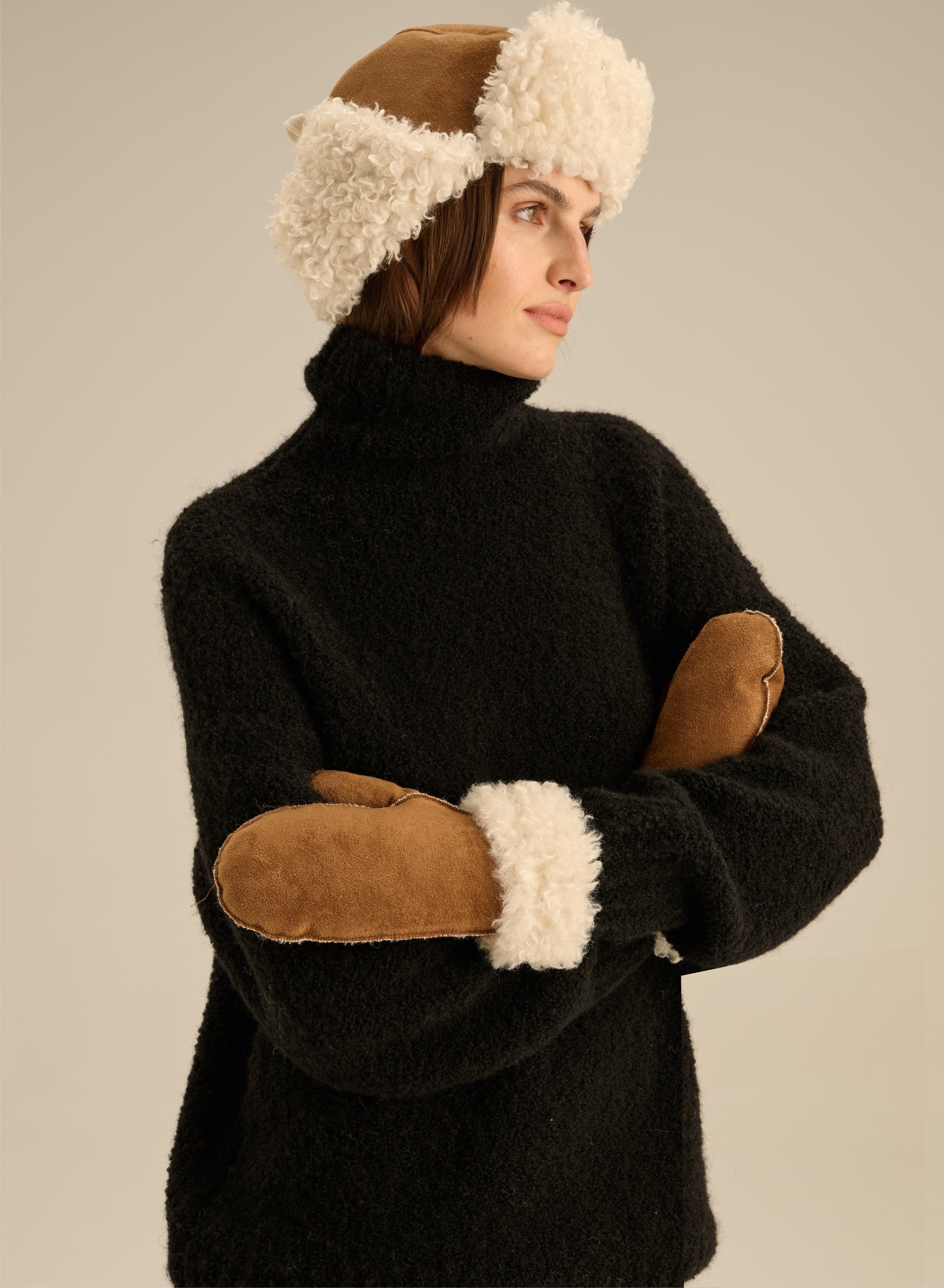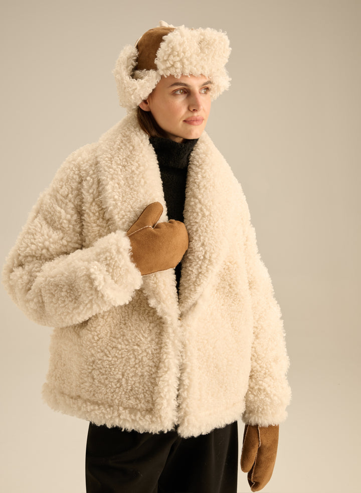 Широкі рукавиці з теплої тканини, що імітує овчину.
