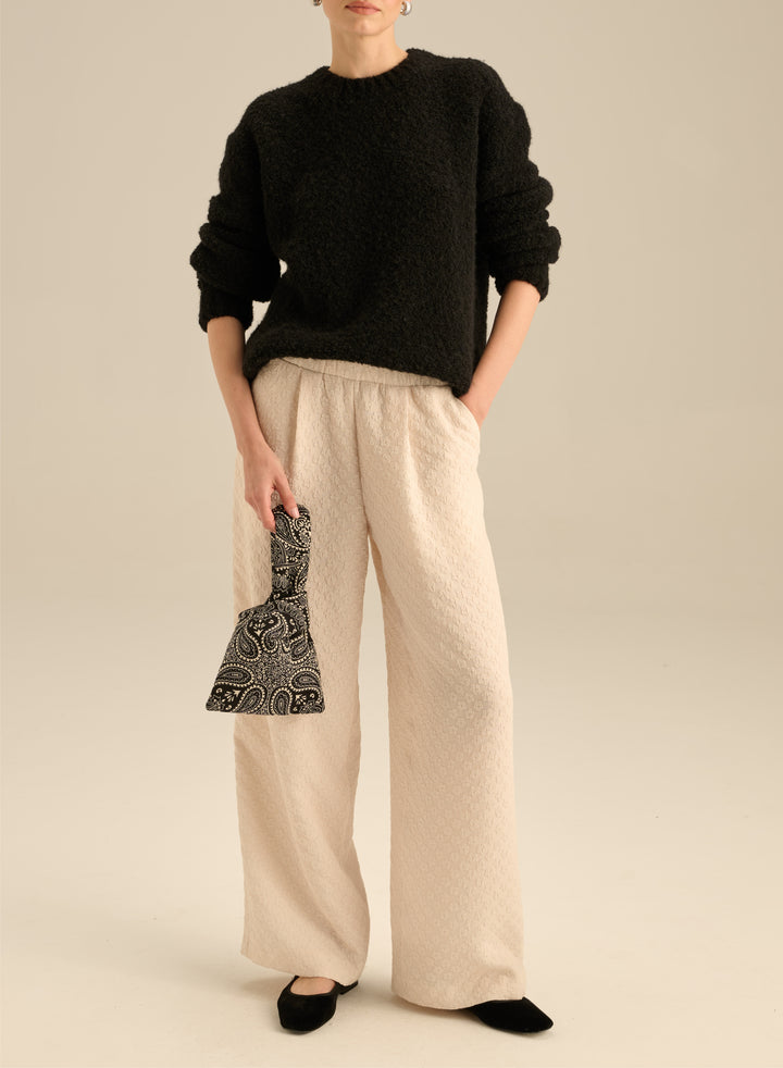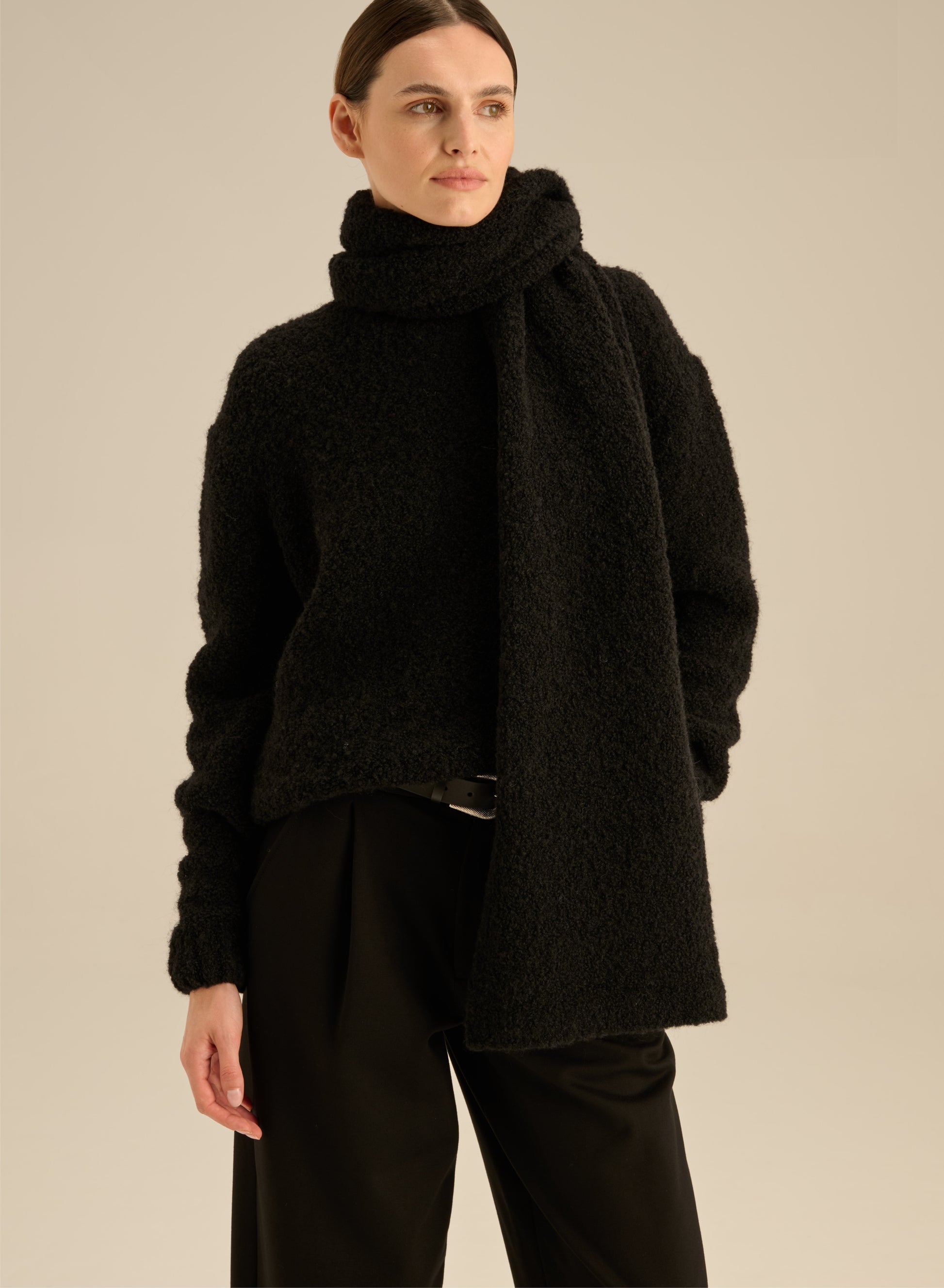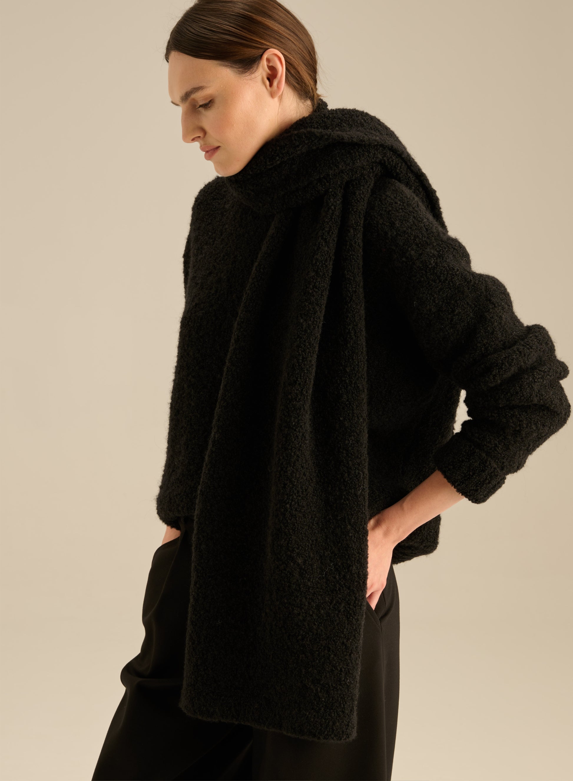 Довгий шарф рівномірного переплетення з м'якого трикотажу. Кожен виріб унікальний і трохи відрізняється від інших.