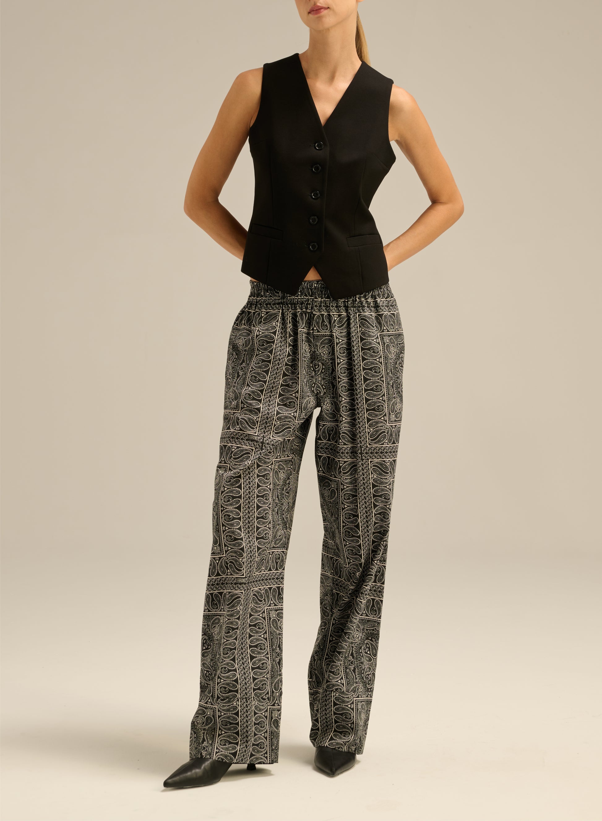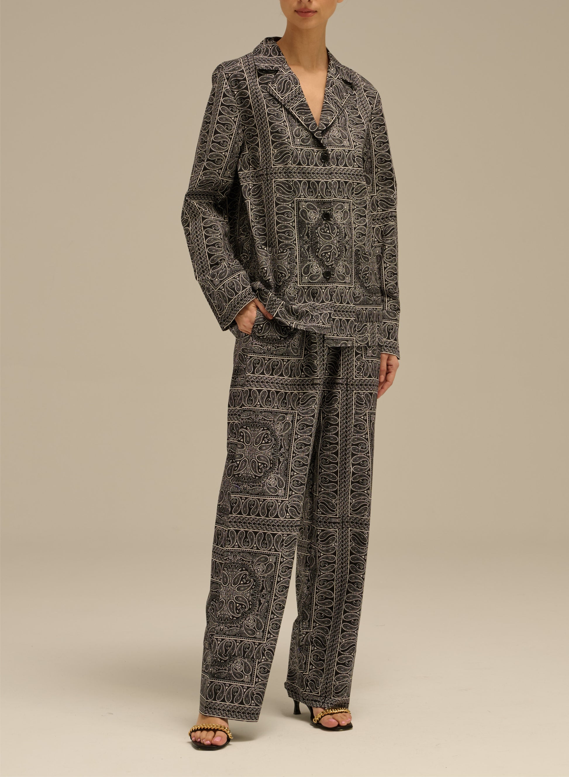 Комплект, що складається з сорочки Julien і штанів Roy. Виготовлений з бавовни з принтом з впізнаваним візерунком бандана. Сорочка має крій оверсайз, штани мають еластичний пояс і широкі штанини. У разі можливого повернення набір необхідно повернути в цілому вигляді