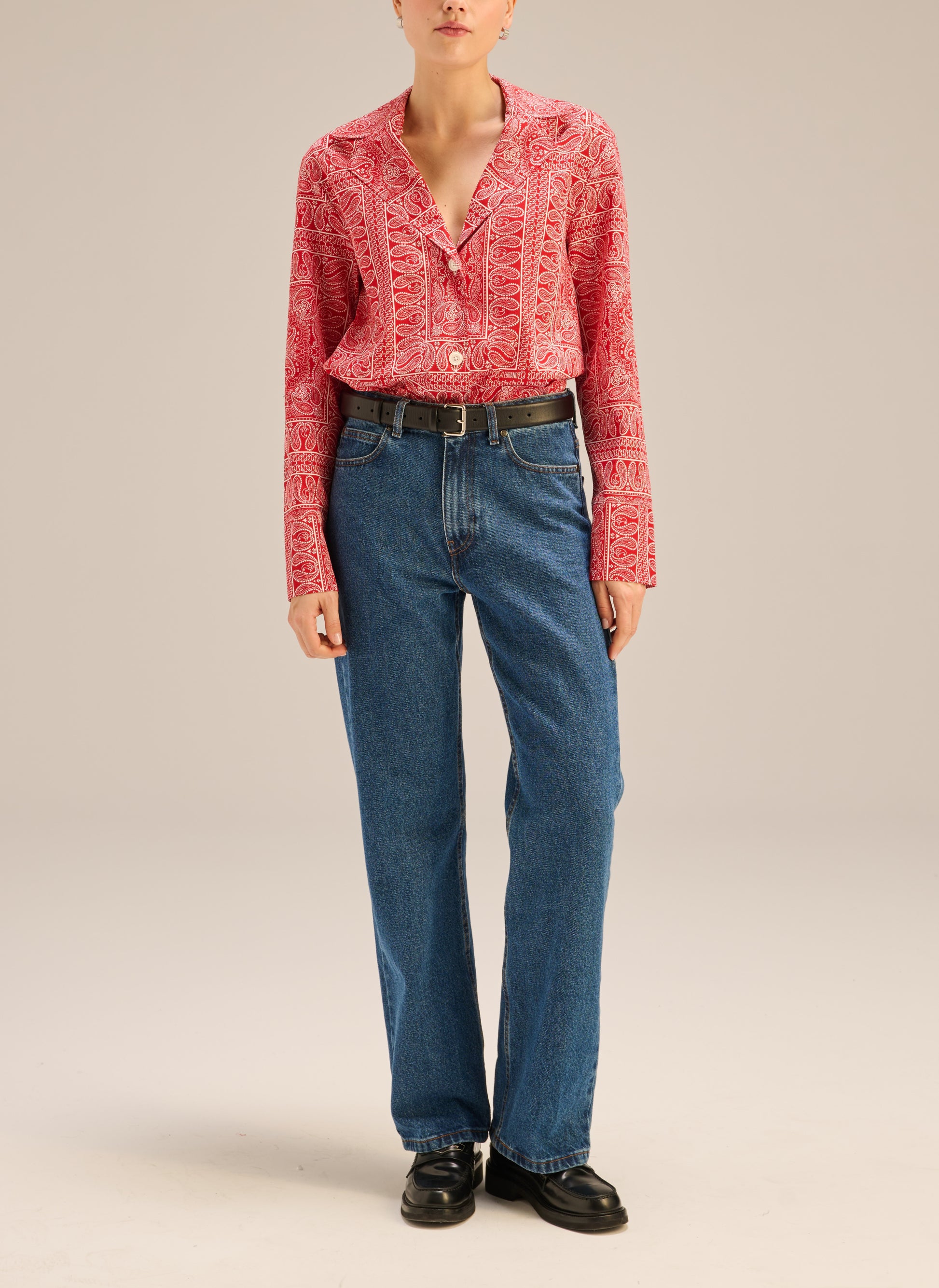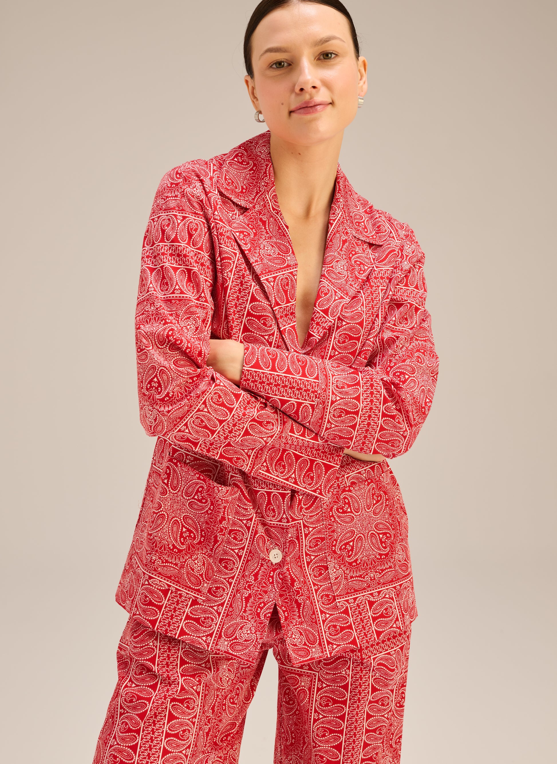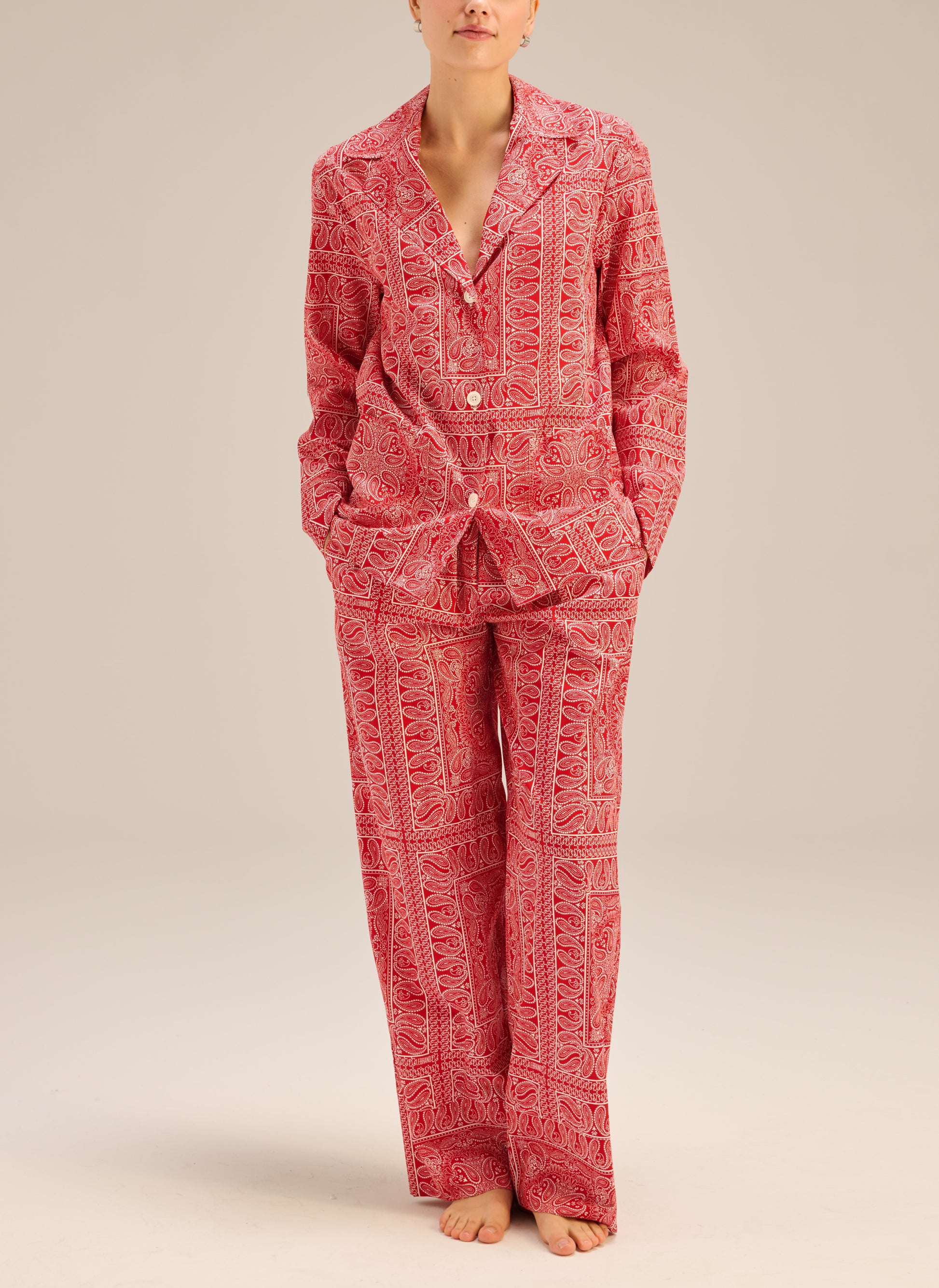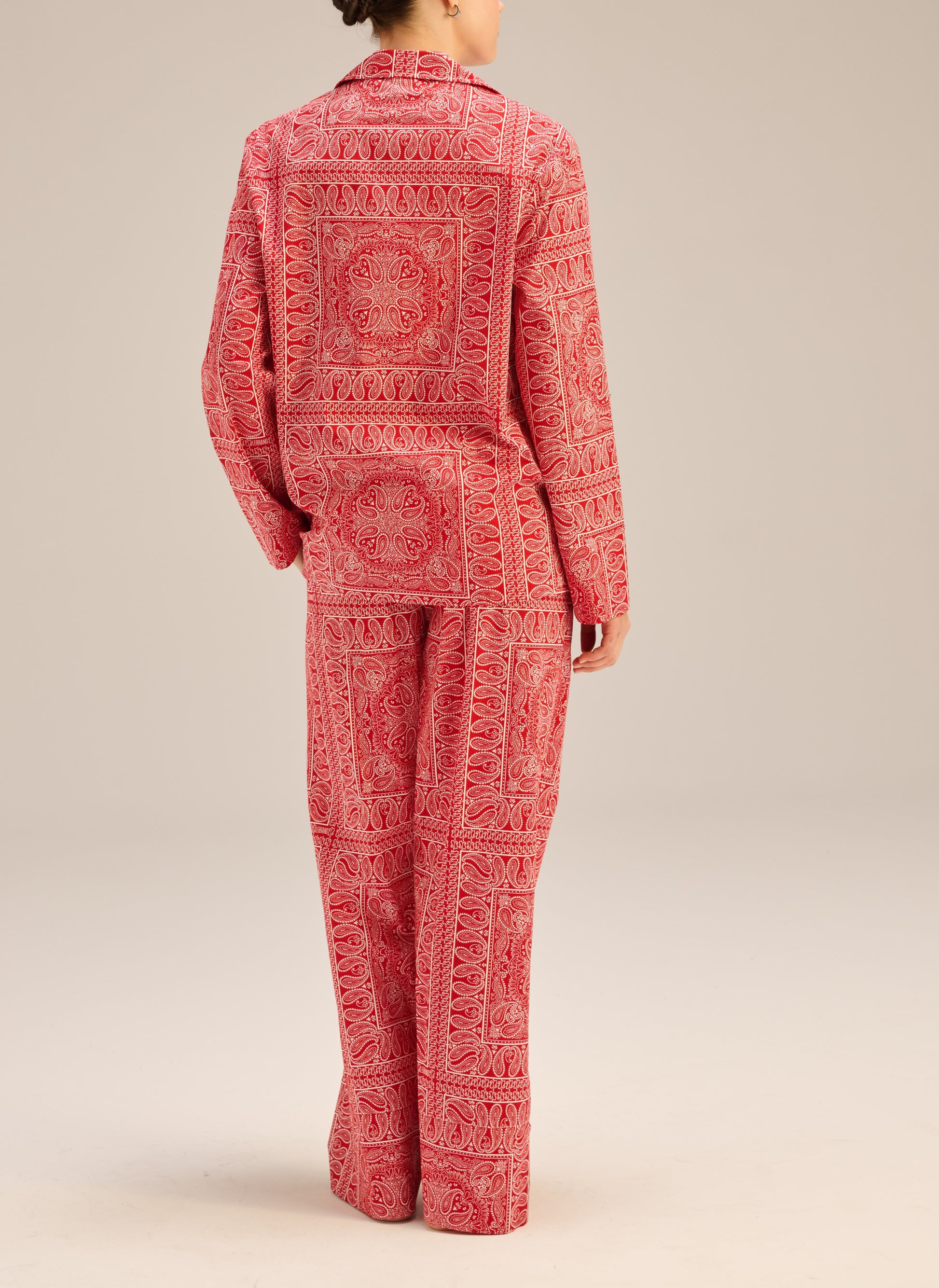 Сорочка в піжамному стилі з легкої бавовни з впізнаваним принтом бандана. Має довгий рукав, дві накладні кишені спереду та гострий комір.