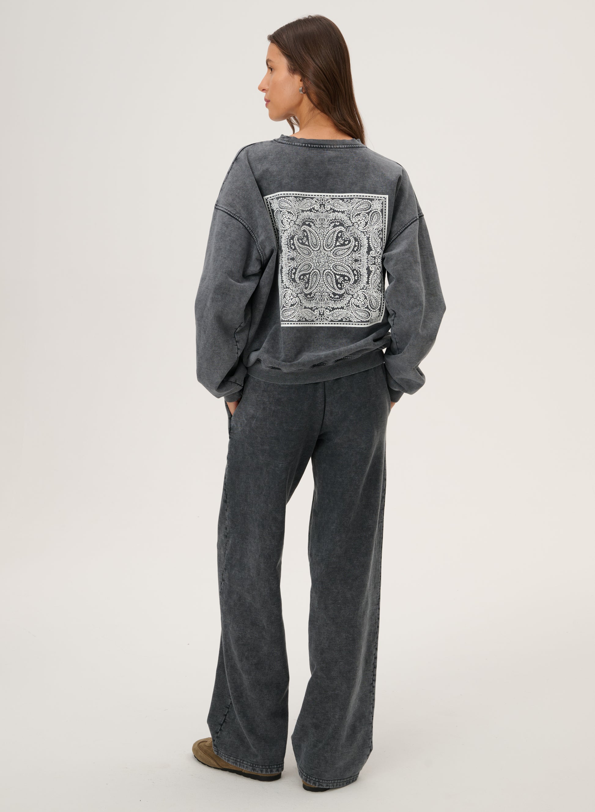 Spodnie z bawełnianej dzianiny z szeroką nogawką w szarym kolorze - Bruno