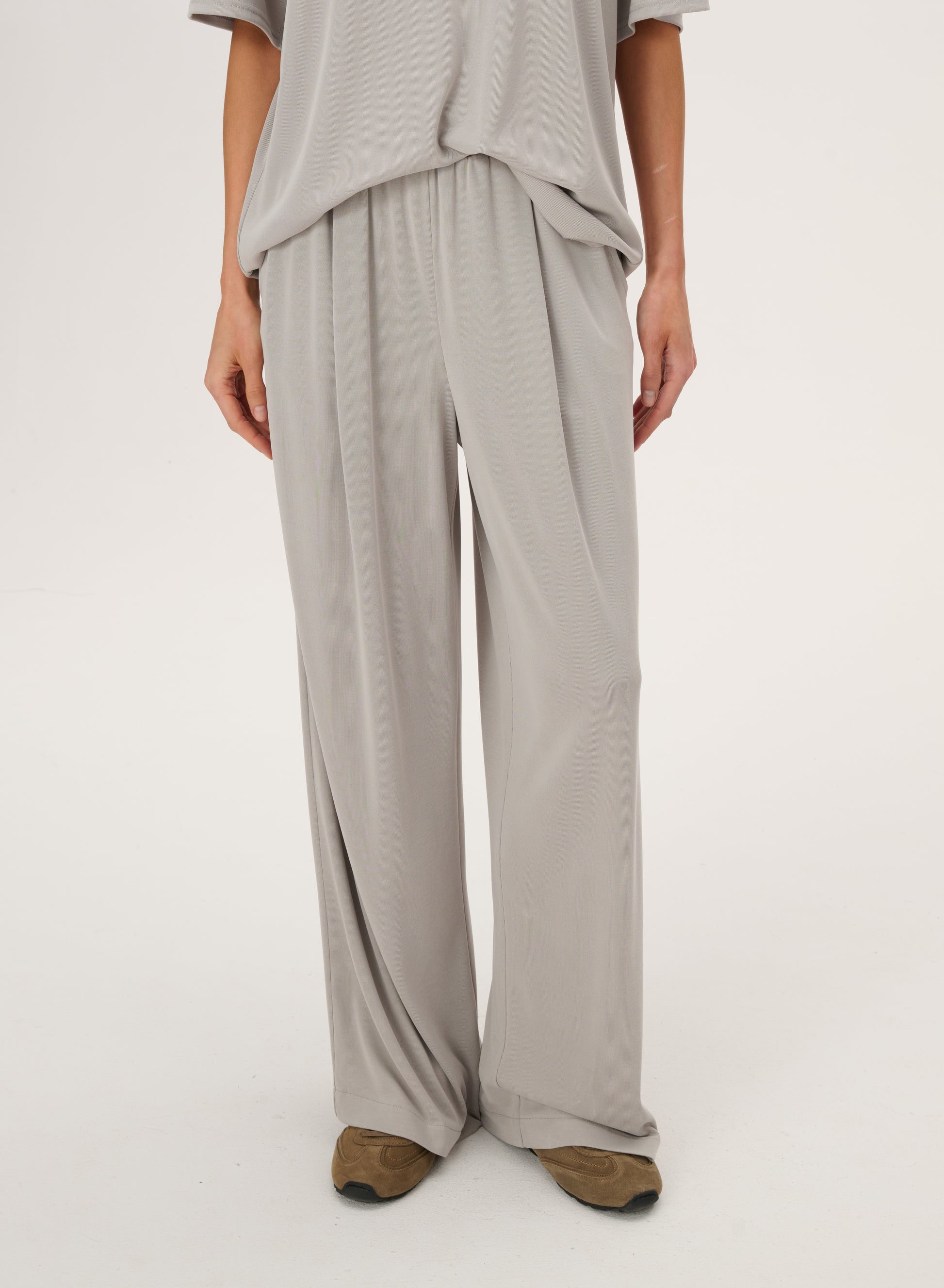 Spodnie z delikatnej dzianiny z szeroką nogawką w szarym kolorze - Francesca