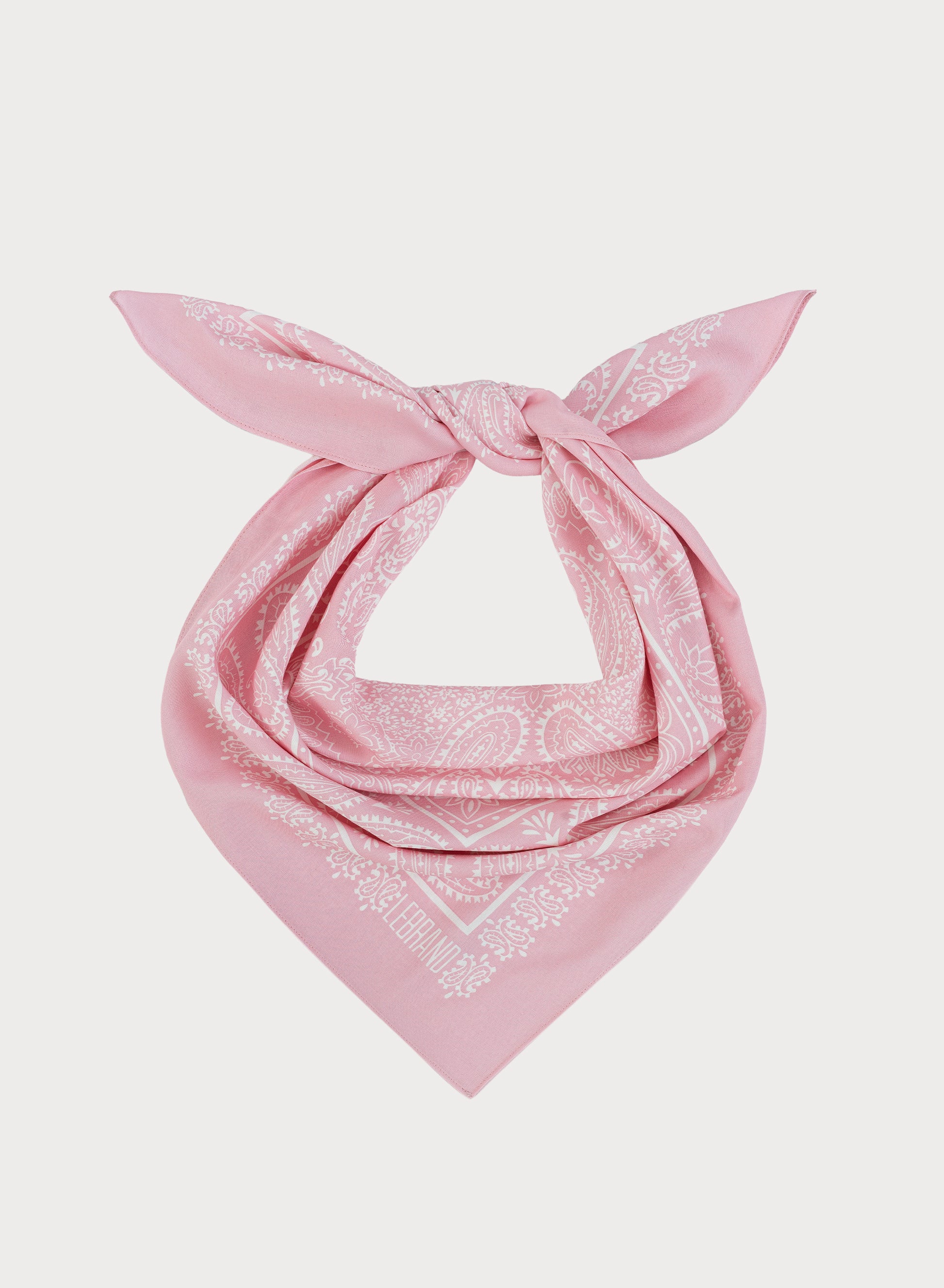 Універсальна бандана, ручне оздоблення, виготовлена з м'якої віскози світло-рожевого та білого кольорів.