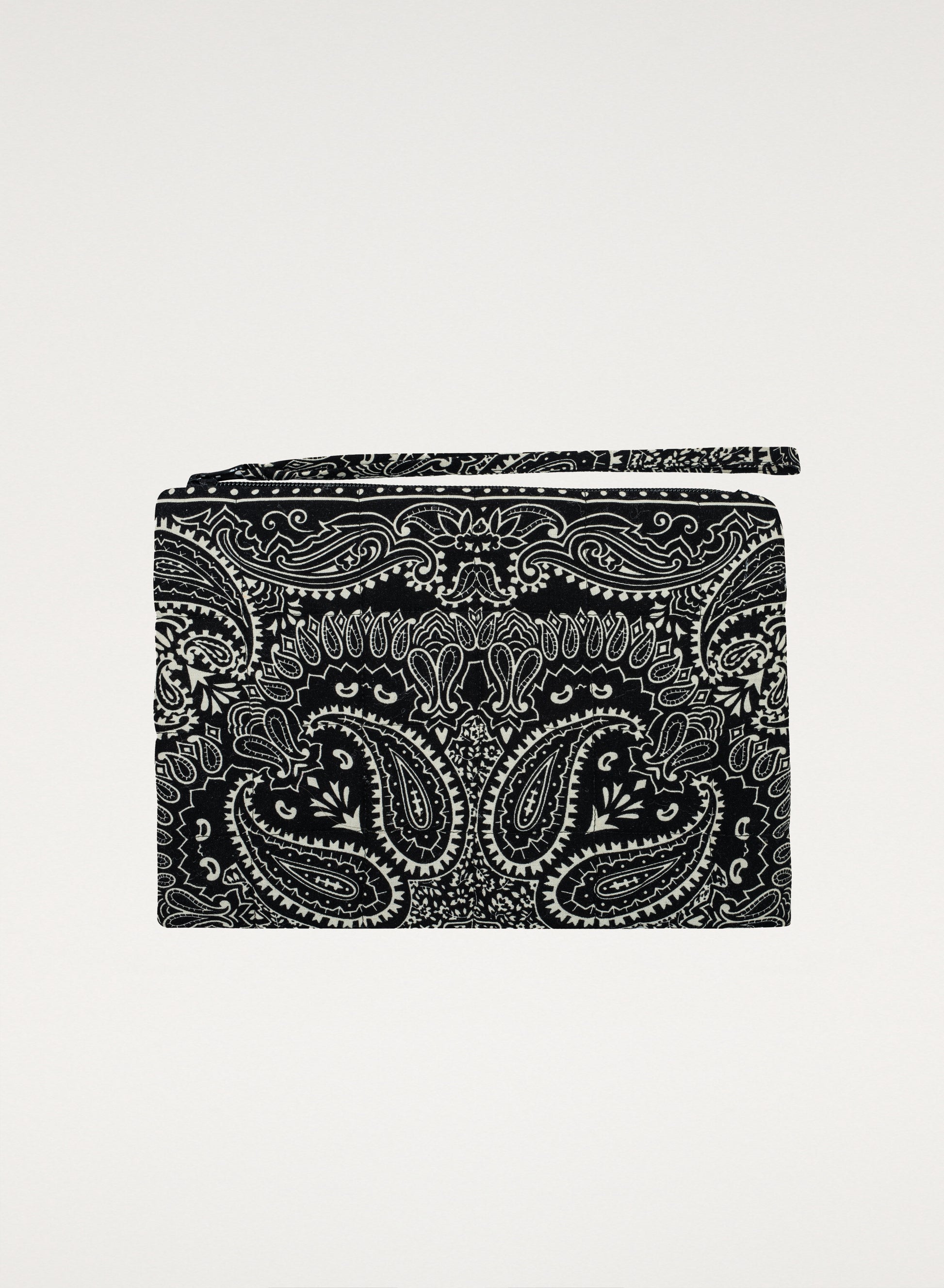 Сумка - косметичка з м'якої віскози в чорному та екрю. Застібається на блискавку, всередині є невелика кишенька.