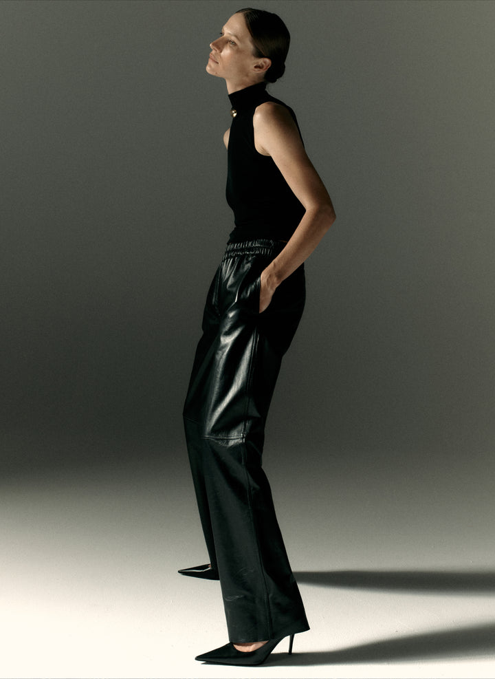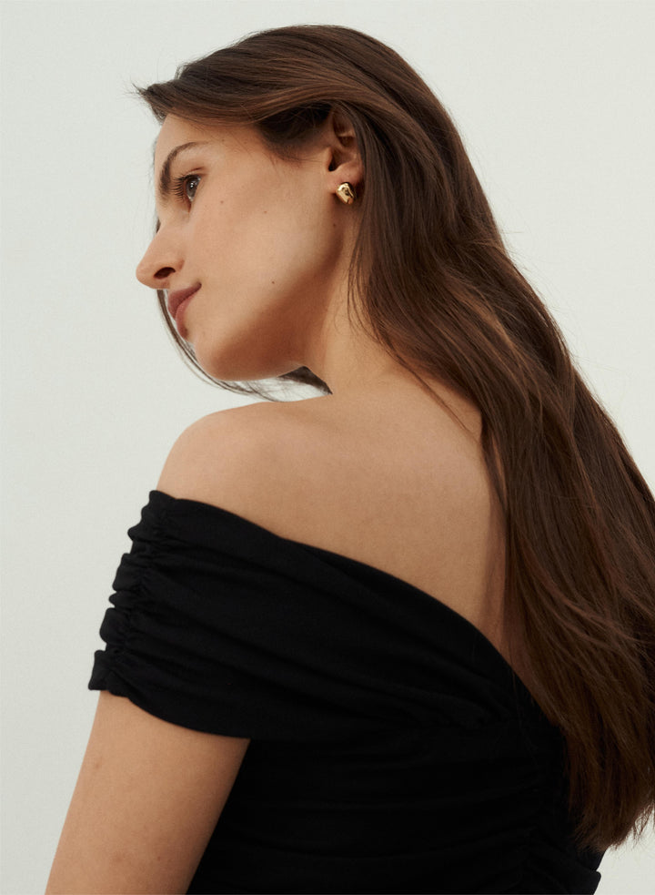 Koszula o luźnym kroju wykonana z delikatnej, satynowej tkaniny w kolorze czarnym. Posiada długie, szerokie rękawy, mankiety zapinane na 3 guziki oraz szeroki kołnierz.